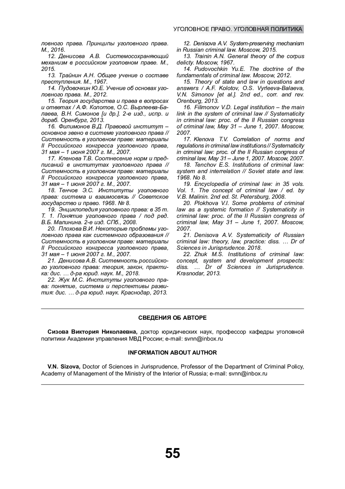 СИЗОВА В. Н. ВОПРОСЫ СТРУКТУРНОГО СТРОЕНИЯ РОССИЙСКОГО УГОЛОВНОГО ЗАКОНОДАТЕЛЬСТВА // ОБЩЕСТВО И ПРАВО. 2025. № 3 (93)