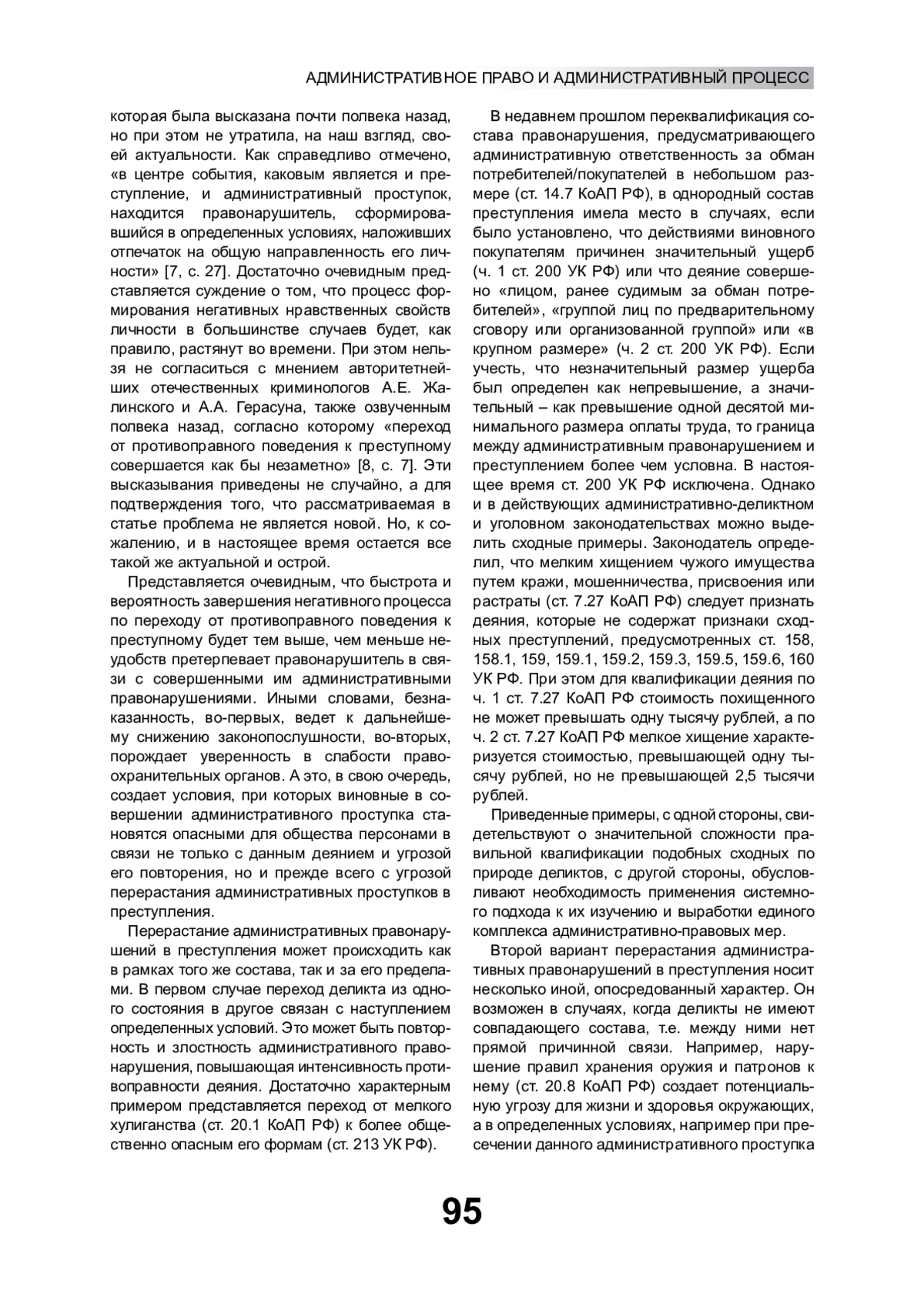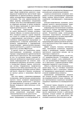 Преступность представляет собой сложное социальное явление, что обусловливает необходимость системного воздействия на факторы, определяющие ее состояние и развитие [1, 2; 3, c. 125–135, 4; c. 50–51]. К числу основных детерминант преступности следует отнести административную деликтность. Отметим, что более четверти века мы отстаиваем позицию о целесообразности рассмотрения совокупности преступлений и административных правонарушений в рамках единой системы деликтов, что служит основой для системного подхода к предупреждению административной деликтности и преступности