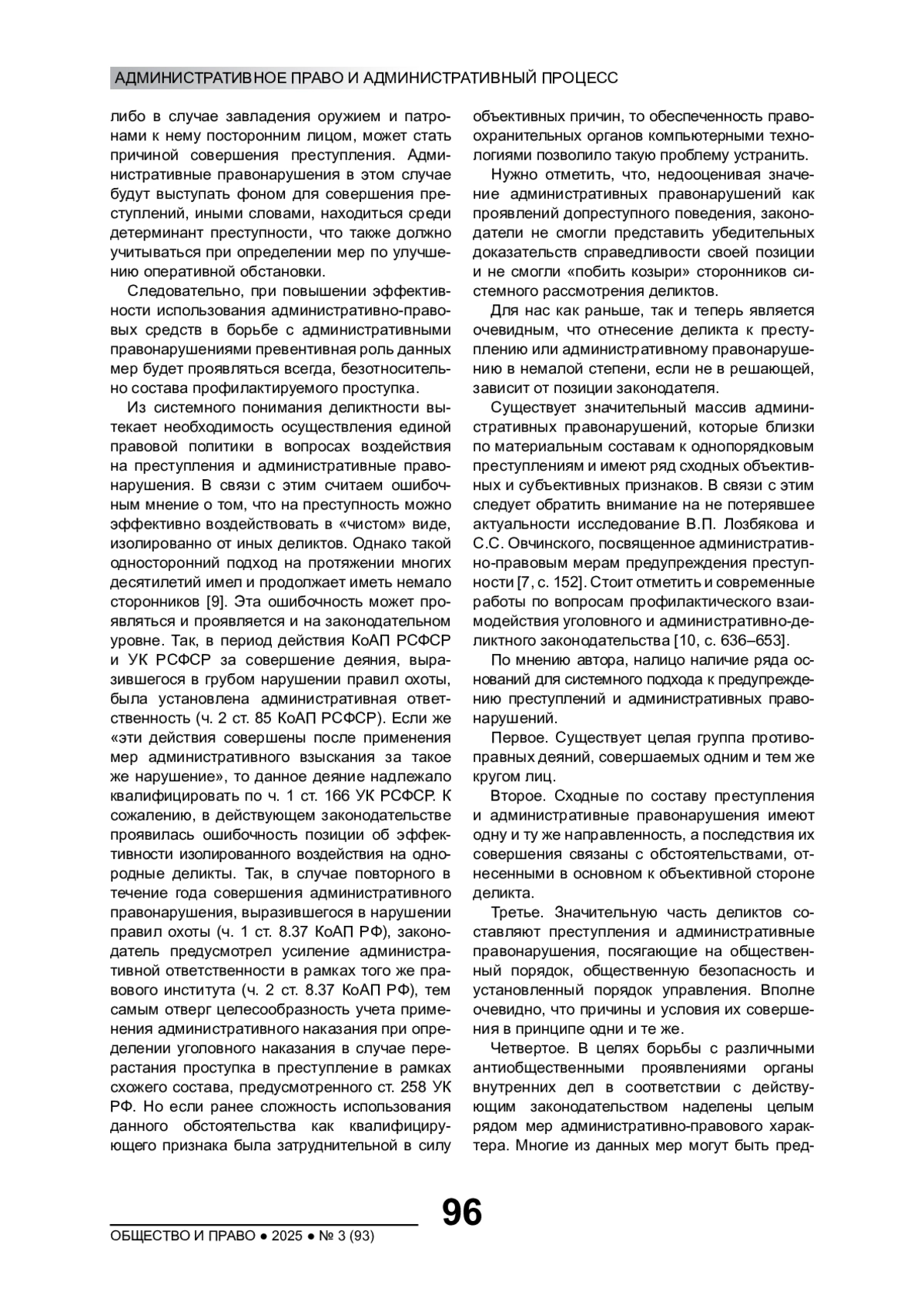 10. Смоляков П.Н. Общий взгляд на профилактическое взаимодействие уголовного и административно-деликтного законодательства // Вестник СПбГУ. Право. 2024. Т. 15, вып. 3. С. 636-653.