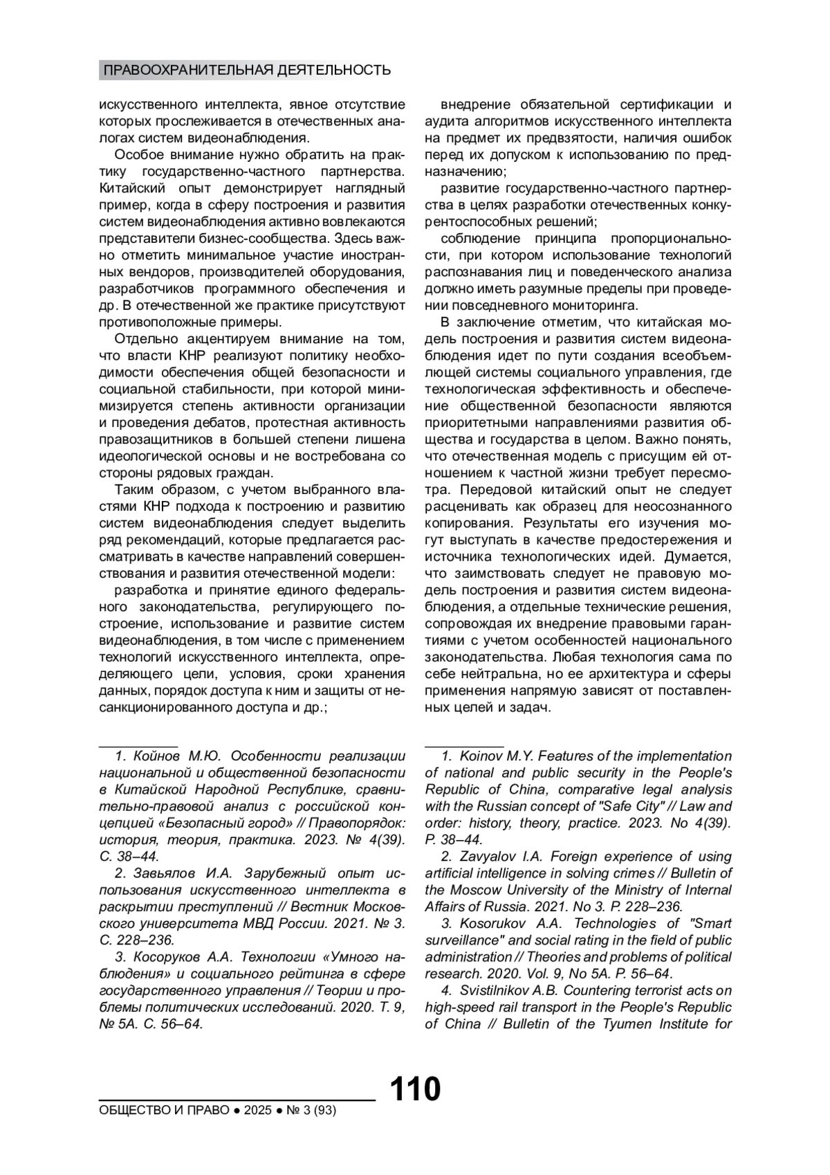 Статья: О ПЕРЕДОВЫХ ПОДХОДАХ К СОЗДАНИЮ И ИСПОЛЬЗОВАНИЮ СИСТЕМ ВИДЕОНАБЛЮДЕНИЯ ПРИ РЕШЕНИИ ЗАДАЧ БОРЬБЫ С ПРЕСТУПНОСТЬЮ (НА ПРИМЕРЕ КИТАЙСКОЙ НАРОДНОЙ РЕСПУБЛИКИ) (2025)