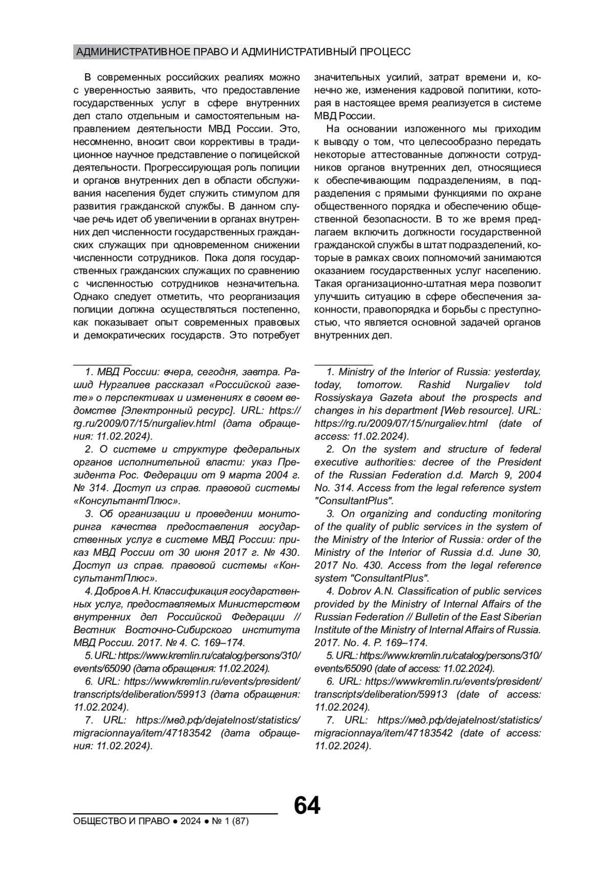 4. Добров А.Н. Классификация государственных услуг, предоставляемых Министерством внутренних дел Российской Федерации // Вестник Восточно-Сибирского института МВД России. 2017. № 4. С. 169-174. EDN: YLQBBK