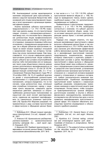 Статья: ОСОБЕННОСТИ КВАЛИФИКАЦИИ НЕЗАКОННЫХ ОПЕРАЦИЙ С ЦЕННЫМИ БУМАГАМИ (СТАТЬЯ 170.1 УГОЛОВНОГО КОДЕКСА РОССИЙСКОЙ ФЕДЕРАЦИИ) (2024)
