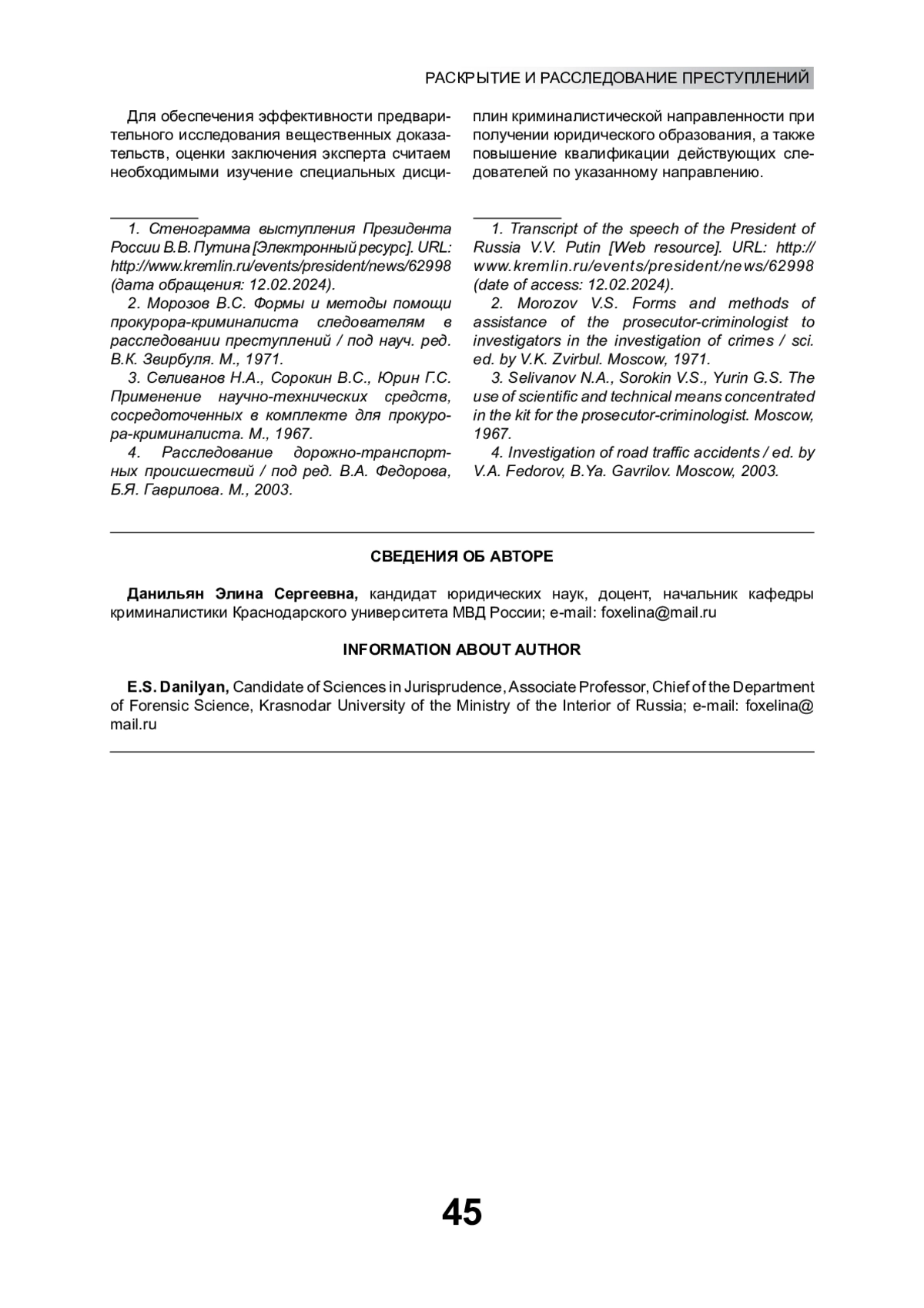 2. Морозов В.С. Формы и методы помощи прокурора-криминалиста следователям в расследовании преступлений / под науч. ред. В.К. Звирбуля. М., 1971.