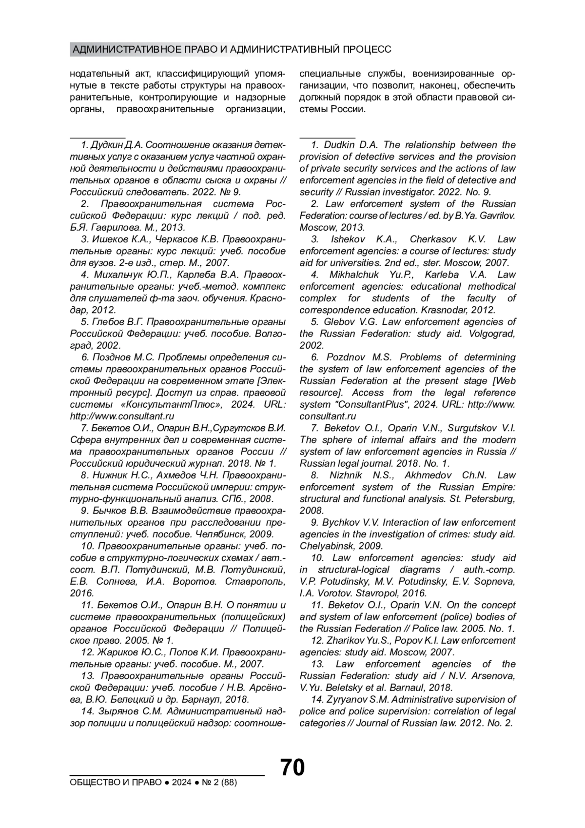 ТЕТЕРЯТНИКОВ Н. Ю., ЖЕЛЕЗНЯК Н. С. ПРАВООХРАНИТЕЛЬНЫЕ ОРГАНЫ КАК ПРАВОВАЯ КАТЕГОРИЯ // ОБЩЕСТВО И ПРАВО. 2024. № 2 (88)