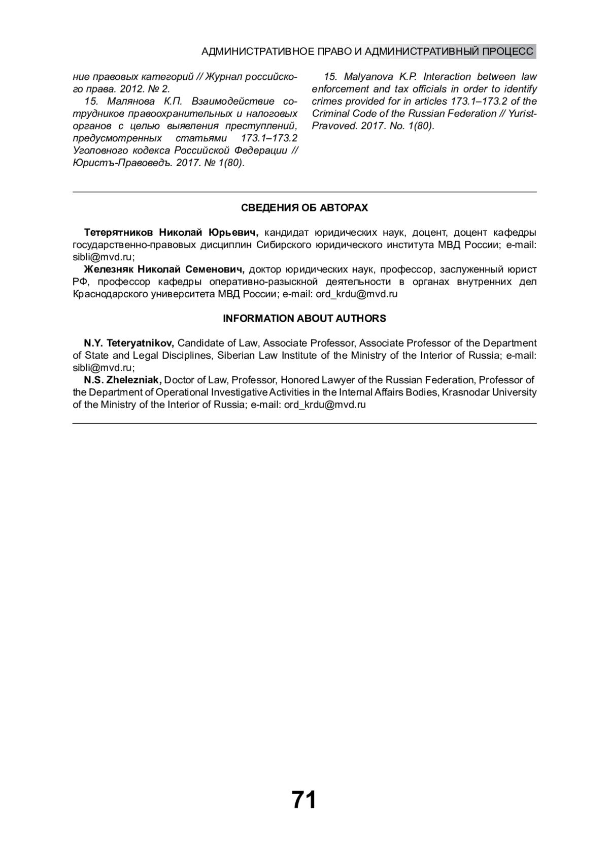 Автор (ы): Тетерятников Николай Юрьевич, ЖЕЛЕЗНЯК НИКОЛАЙ СЕМЕНОВИЧ