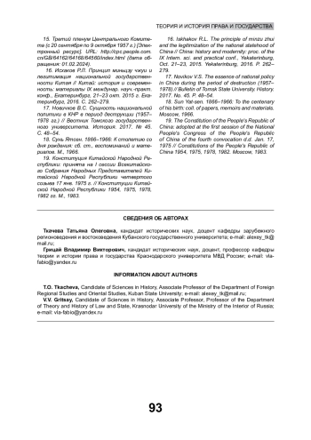 16. Исхаков Р.Л. Принцип миньцзу чжуи и легитимация национальной государственности Китая // Китай: история и современность: материалы IX междунар. науч.-практ. конф., Екатеринбург, 21-23 окт. 2015 г. Екатеринбург, 2016. С. 262-279. EDN: WILFRV