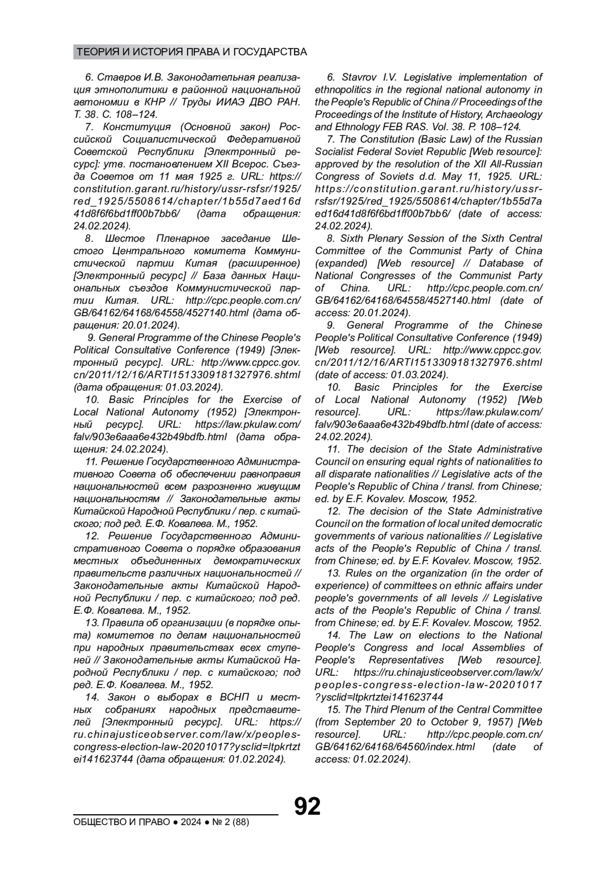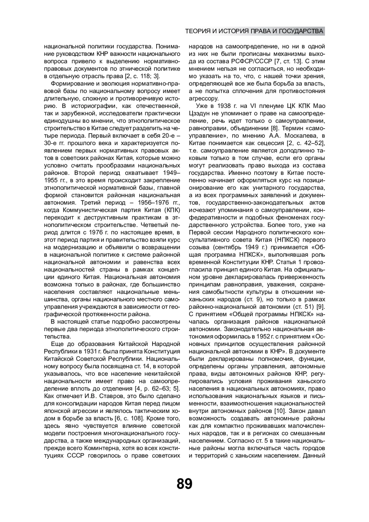 6. Ставров И.В. Законодательная реализация этнополитики в районной национальной автономии в КНР // Труды ИИАЭ ДВО РАН. Т. 38. С. 108-124. EDN: GUGLAX