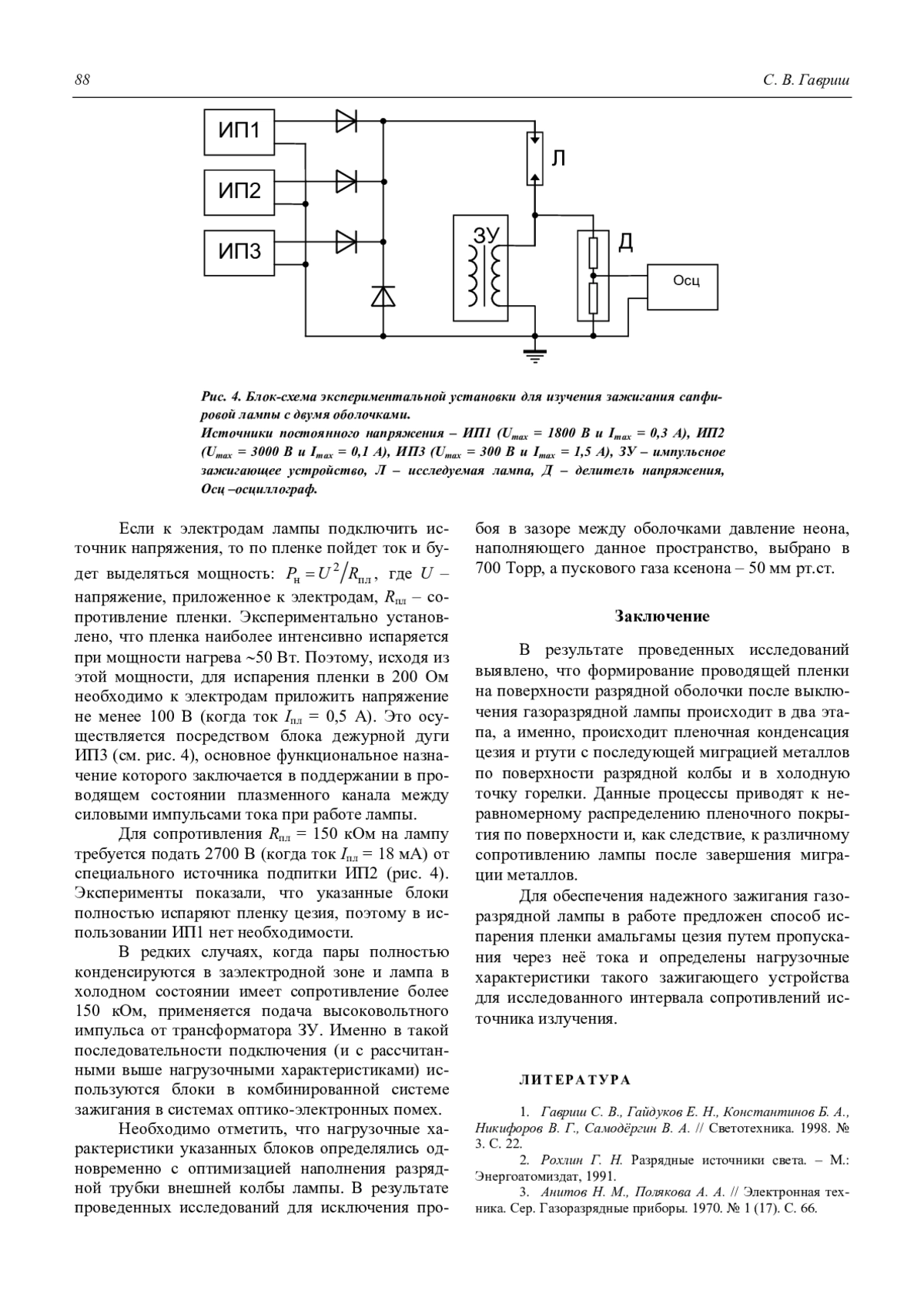 1. Гавриш С. В., Гайдуков Е. Н., Константинов Б. А., Никифоров В. Г., Самодёргин В. А. // Светотехника. 1998. № 3. С. 22.