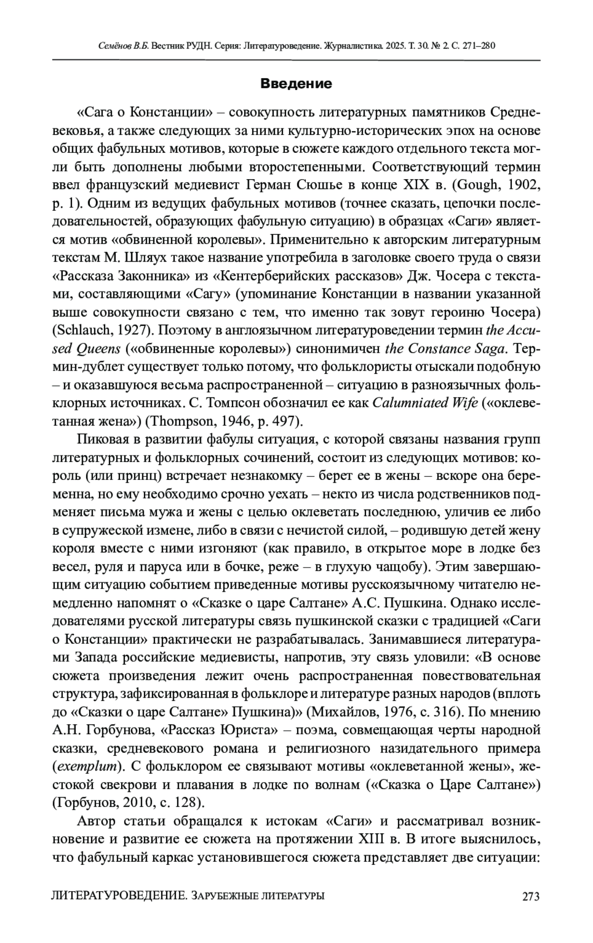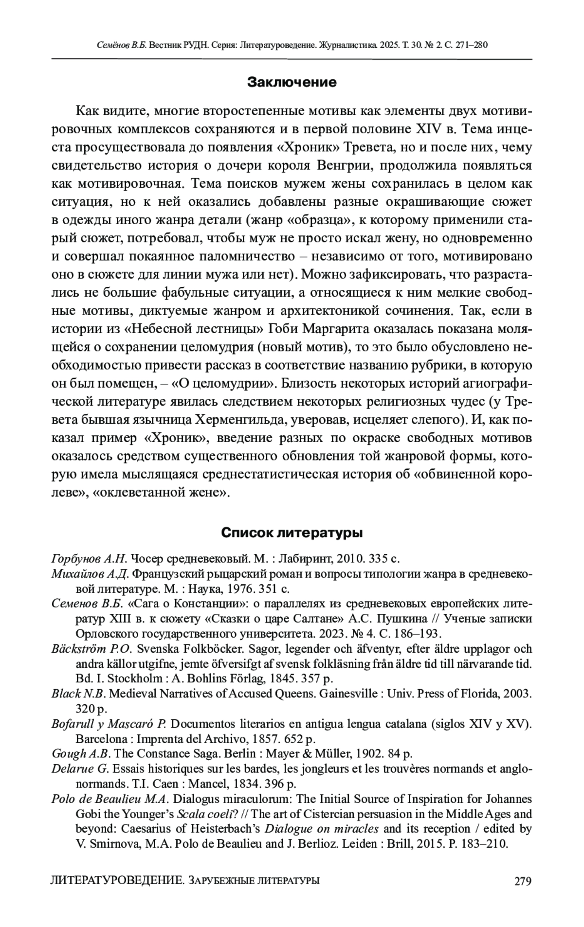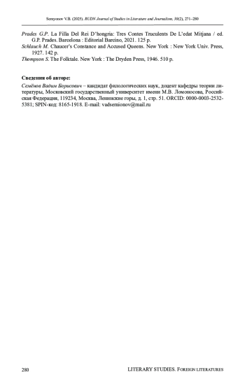 3. Семенов В.Б. “Сага о Констанции”: о параллелях из средневековых европейских лите-ратур XIII в. к сюжету “Сказки о царе Салтане” А.С. Пушкина // Ученые записки Орловского государственного университета. 2023. № 4. С. 186-193.