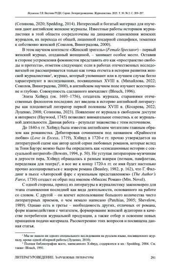 4. Михайлова М.В. Феномен женских журналов в английской литературе XVIII века // Актуальные исследования. 2022. № 4(83). С. 24-28. EDN: JDPSOY