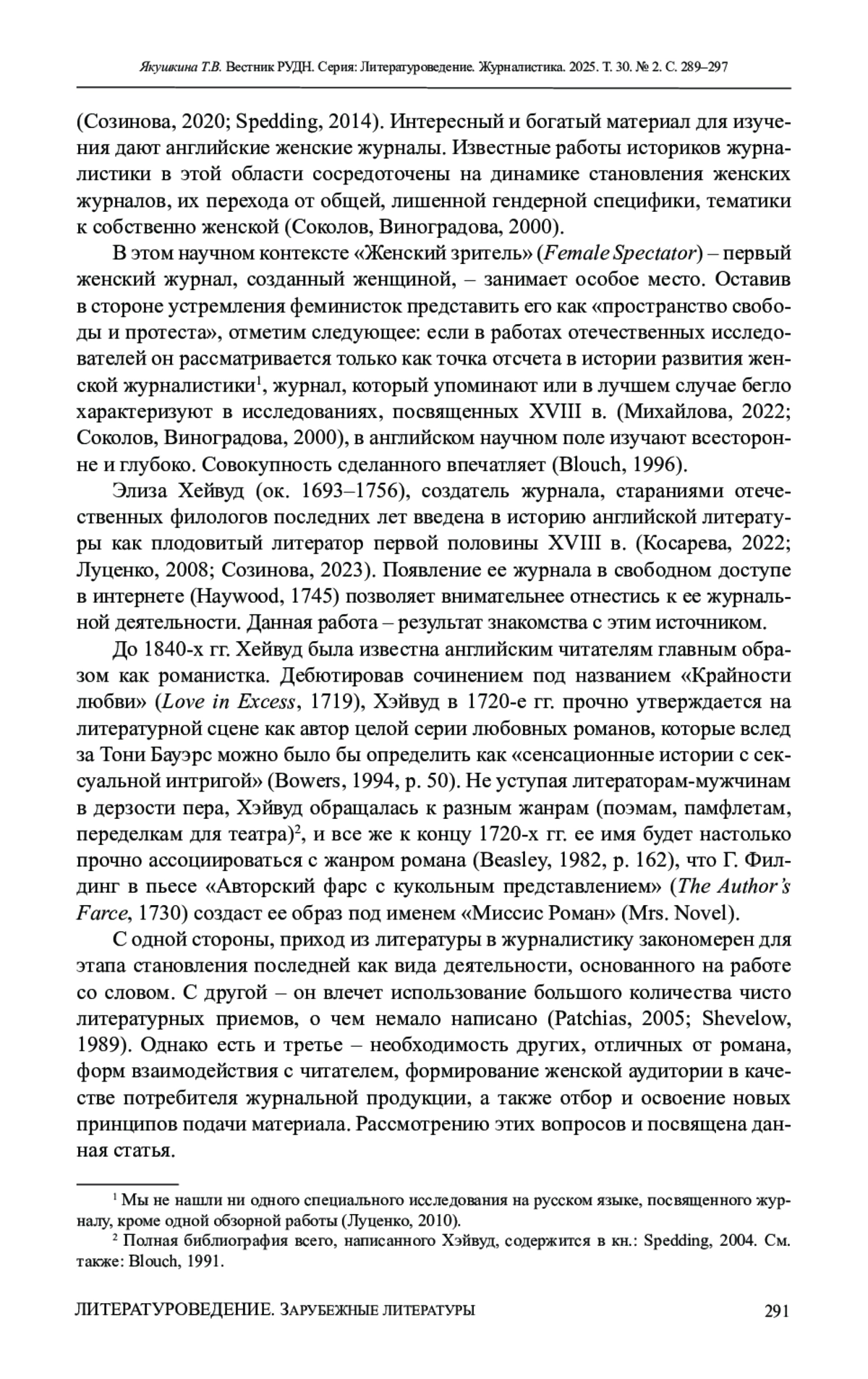 2. Луценко Л. “Женский зритель” Элизы Хейвуд. Поэтологическая новизна авторского журналистского проекта // Вiсник Марiупольського державного гуманiтарного унiверситету. Серия Фiлологiя. 2010. № 3. С. 178-183.