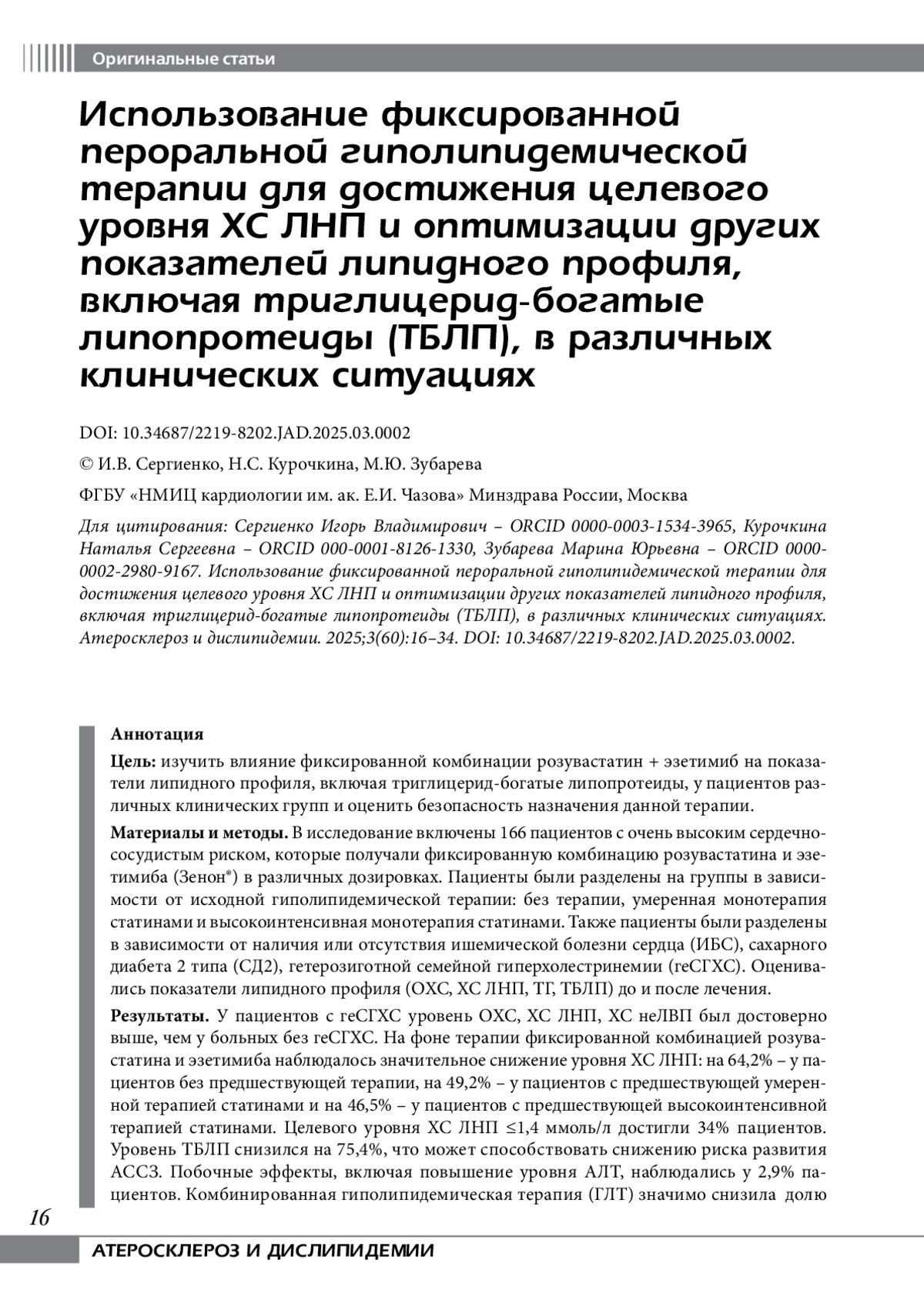 Сергиенко ИВ, Курочкина НС, Прус Ю.А, Нозадзе Д.Н., Аншелес А.А., Ежов М.В, Зубарева М.Ю. Гиполипидемическая терапия: учеб.-методич. пособие. М, 2024).