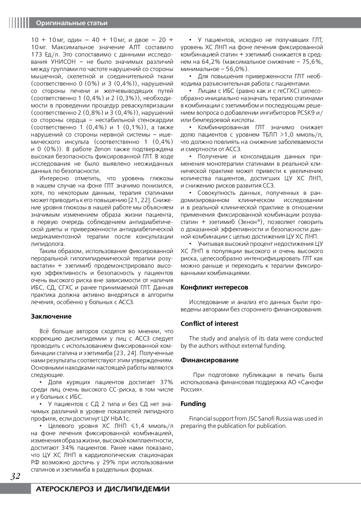 6. Sergienko IV, Ezhov MV, Gurevich VS, Zafiraki VK, Barov OV, Tsygankova EA, et al.Comparative efficacy and safety of statins monotherapy and their combination with ezetimibe (Results of the Russian retrospective observational study UNISON. Atherosclerosis and dyslipidemias. 2022;4(49):25-39. In Russian.