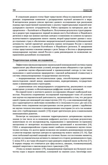 Статья посвящена оценке трансформации научных связей России на восточном и западном направлениях. Актуальность работы обусловлена активным продвижением в практике идеи международного научного сотрудничества как необходимого условия развития современной науки. Цель исследования — оценить реструктуризацию международных научных связей России за последние 30 лет на макрорегиональном уровне. Методика исследования базируется на подходе пространственной наукометрии, позволяющей проводить географический анализ науки с использованием массива больших библиометрических данных. Исследование выполнено на материалах Балтийского и Индийского регионов и охватило период с 1990 по 2024 г. Источник данных — международная реферативная база Scopus. Полученные результаты позволили сделать выводы о месте исследуемых макрорегионов в мире по уровню приращения научного знания, вкладу стран в обеспечение макрорегиональной динамики публикационной активности и степени интеграции России в научное пространство Балтийского и Индийского регионов. Показано, что Балтийский регион занимает устойчивое положение в мире по количеству научных публикаций, демонстрируя небольшой, но стабильный ежегодный прирост и высокие значения научной продуктивности. Индийский регион — динамичнее в научном плане, однако имеет более высокую степень централизации научной активности и меньшую научную продуктивность. Россия вовлечена в научное сотрудничество с обоими макрорегионами. Однако если со странами Балтийского региона наблюдается его стагнация, усилившаяся после 2022 г., то со странами Индийского региона, напротив, отмечается рост совместной публикационной активности. Подчеркивается необходимость дальнейших качественных исследований по данной тематике для более глубокого понимания изменений в мировой географии науки и места России.