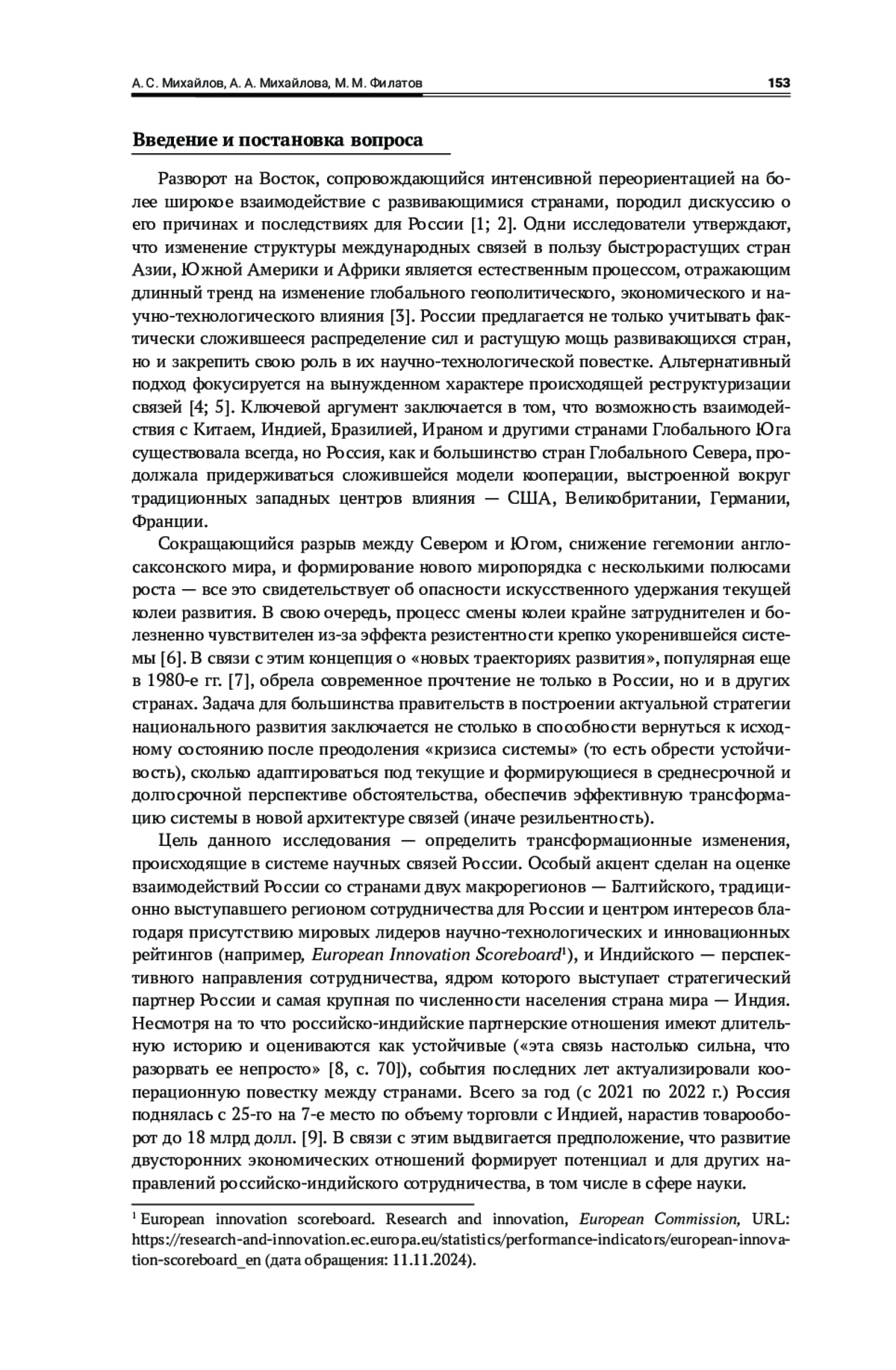 8.Леонова, О. Г. 2023, Индия и Россия в новых геополитических условиях: новый этап взаимоотношений?, Россия и современный мир, № 2 (119), с. 64—78. EDN: ZTKXIY, https://doi.org/10.31249/rsm/2023.02.05