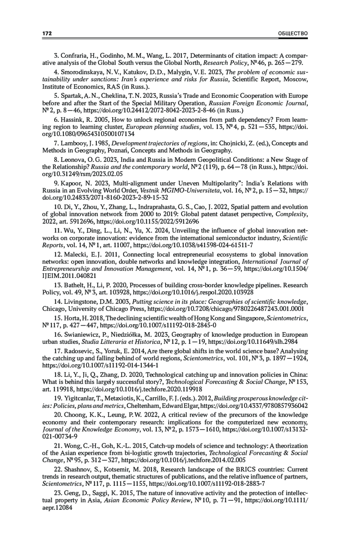 27.Frenken, K. 2020, Geography of scientific knowledge: A proximity approach, Quantitative Science Studies, № 1 (3), p. 1007—1016. EDN: MJFVVC, https://doi.org/10.1162/qss_a_00058
