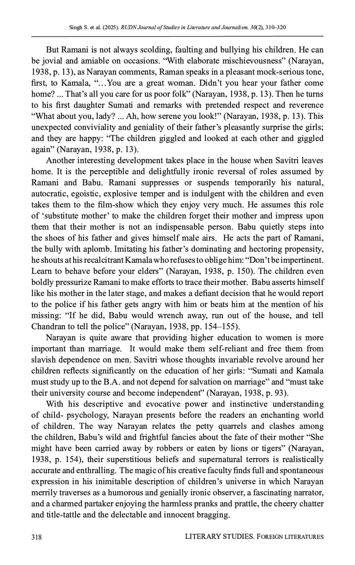 8. Madhavaiah, G. (2022). Portrayal of women in R.K. Narayan’s The Dark Room. Journal of Positive School Psychology, 6564-6567.