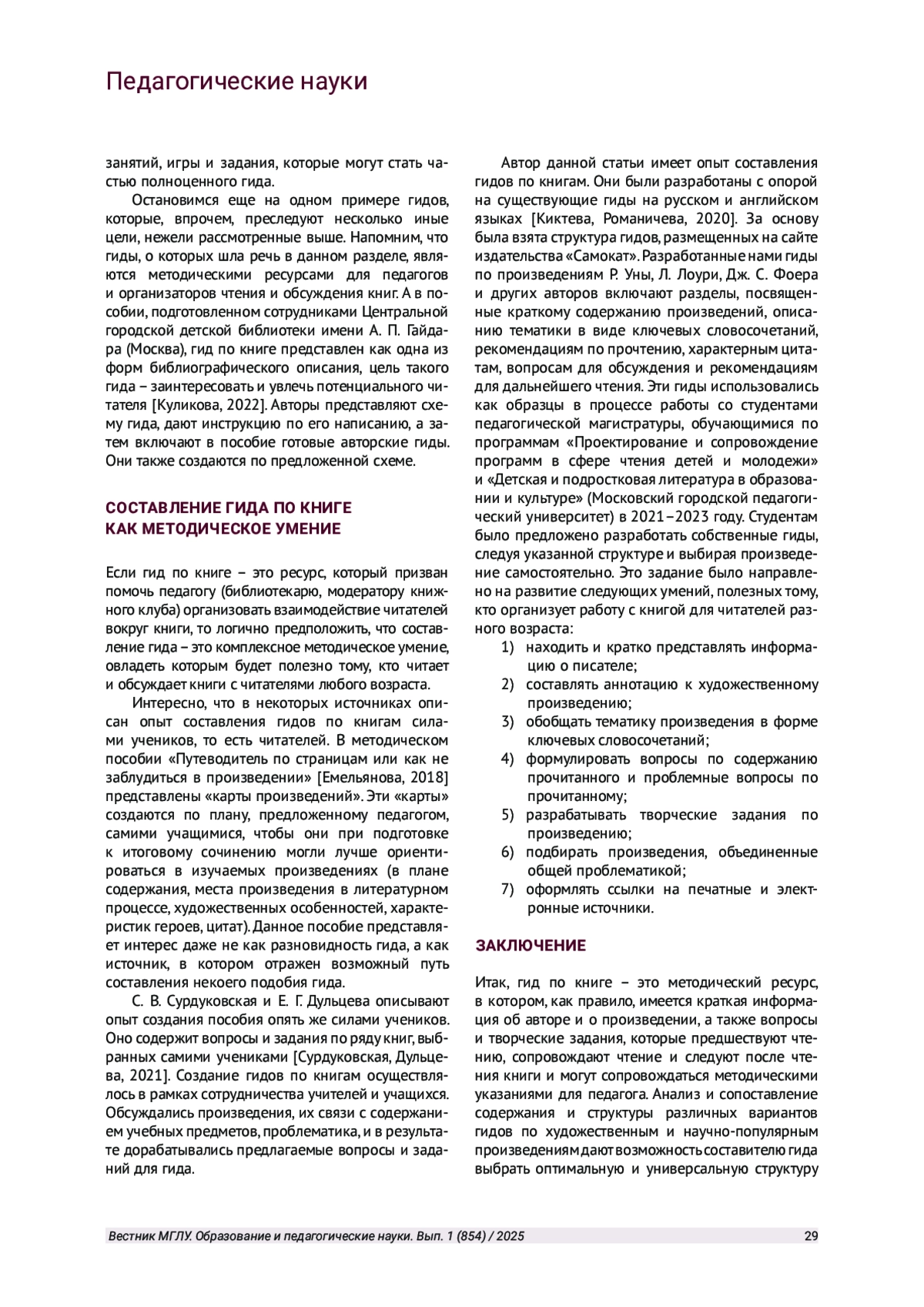 В статье рассматриваются различные англоязычные и русскоязычные гиды по книгам (среди которых как художественные, так и научно-популярные произведения), выявляется общее и различное в их структуре и содержании. Анализируется опыт разработки гидов по книгам и приводится перечень умений, на развитие которых направлена деятельность студентов педагогической магистратуры. Они разрабатывают собственные гиды по книгам в соответствии с предложенной моделью.