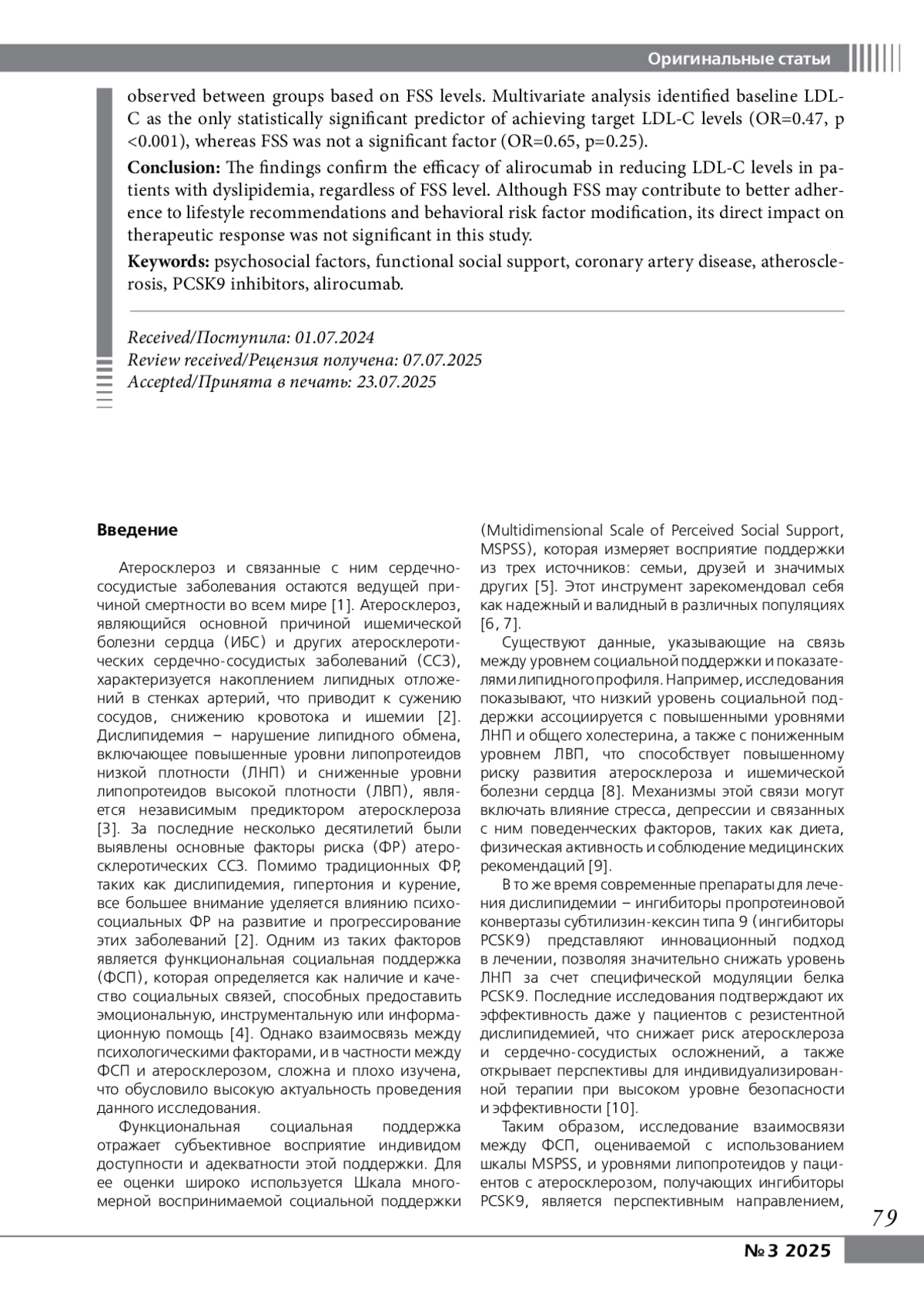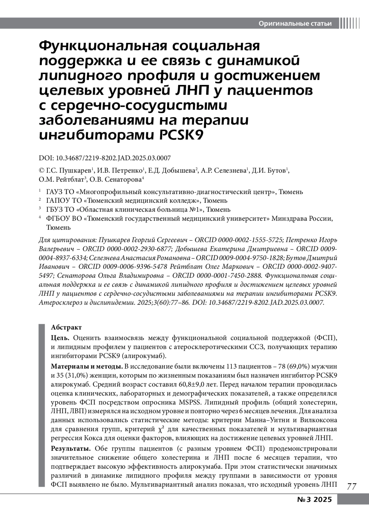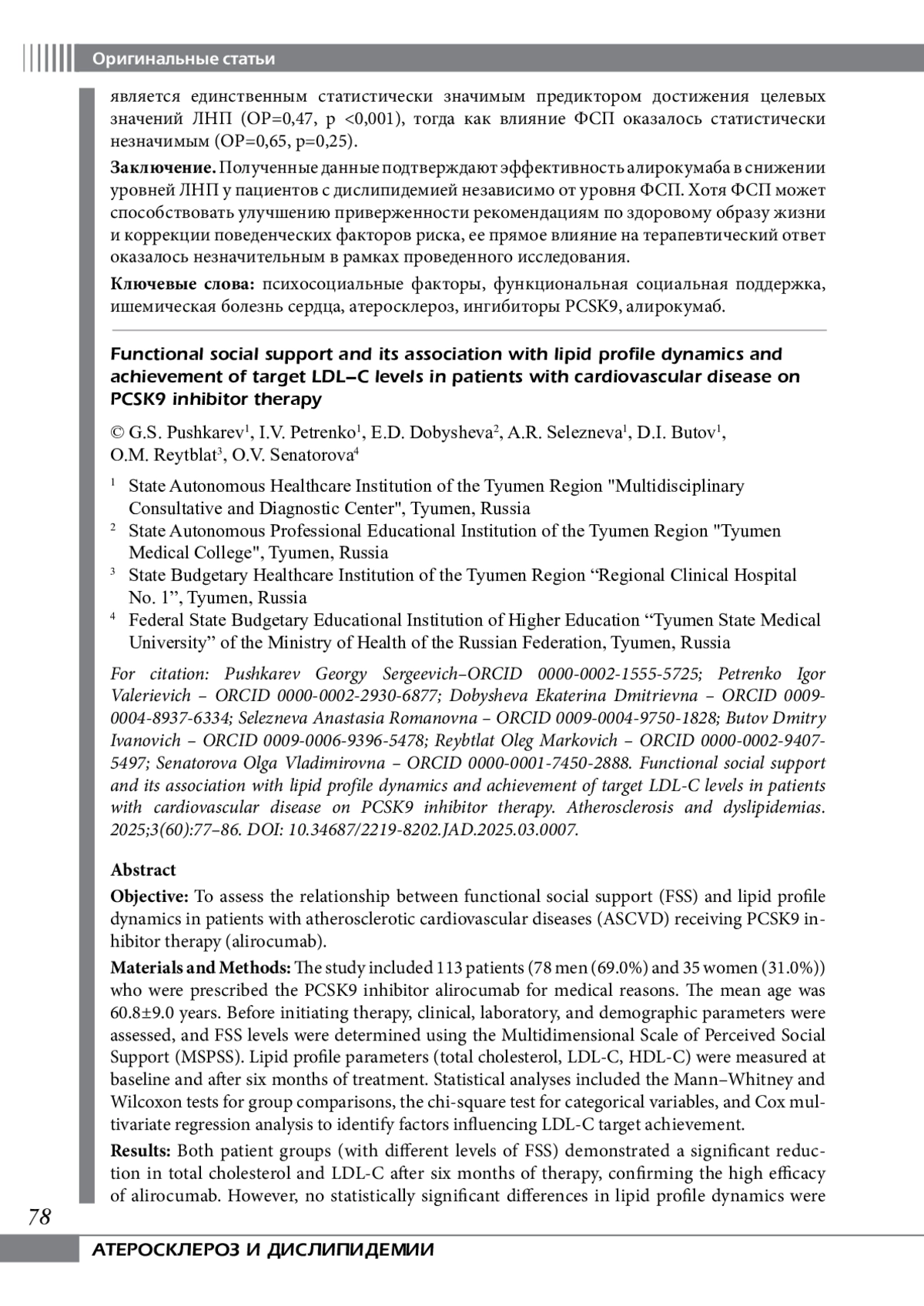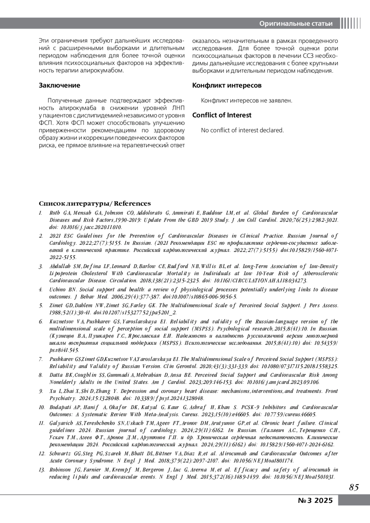 7. Pushkarev GS, Zimet GD, Kuznetsov VA, Yaroslavskaya EI. The Multidimensional Scale of Perceived Social Support (MSPSS): Reliability and Validity of Russian Version. Clin Gerontol. 2020;43(3)’331-339. DOI: 10.1080/073171152018.1558325