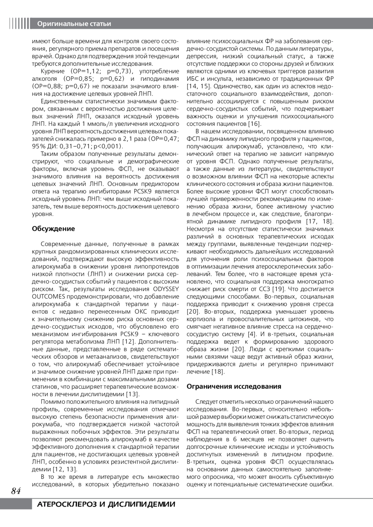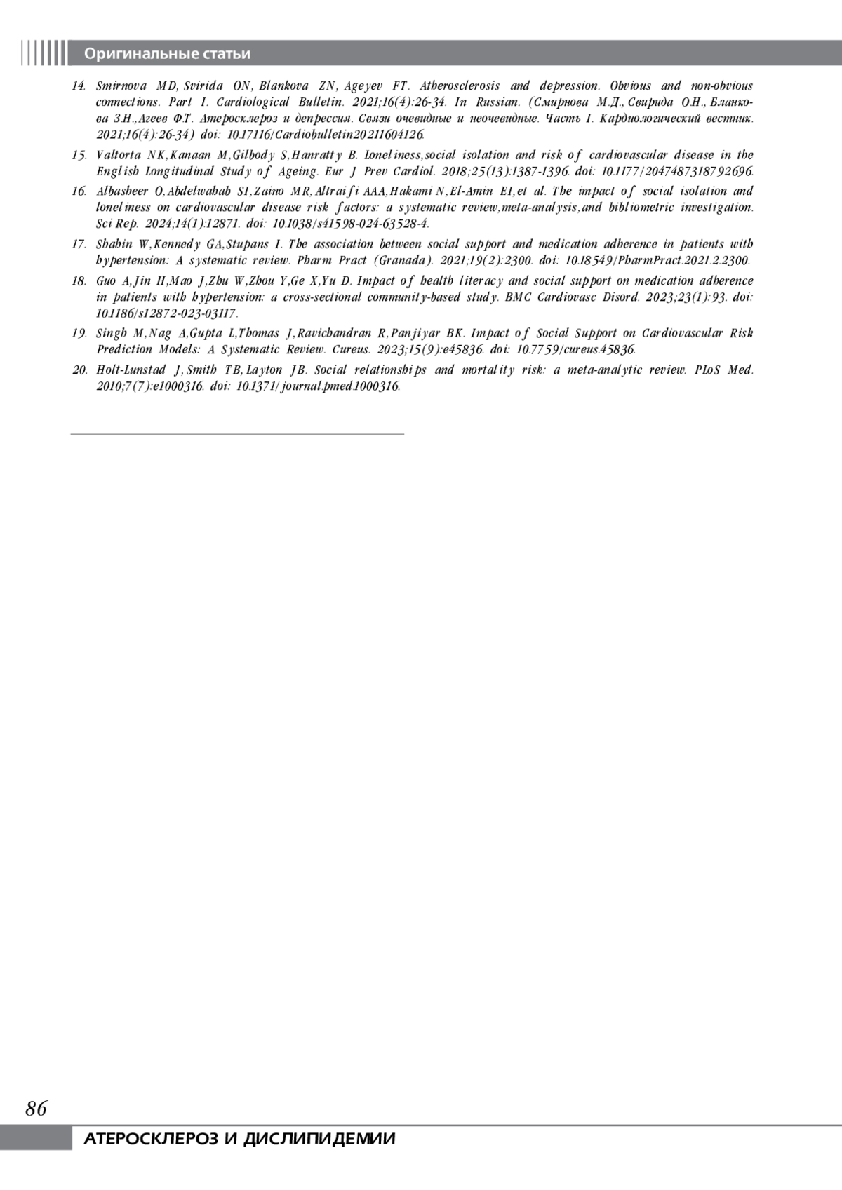 14. Smirnova MD, Svirida ON, Blankova ZN, Ageyev FT. Atherosclerosis and depression. Obvious and non-obvious connections. Part I. Cardiological Bulletin. 2021;16(4):26-34. In Russian.