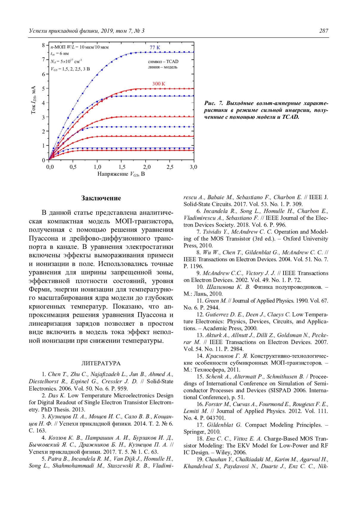 8. Wu W., Chen T., Gildenblat G., McAndrew C. C. // IEEE Transactions on Electron Devices. 2004. Vol. 51. No. 7. P. 1196.