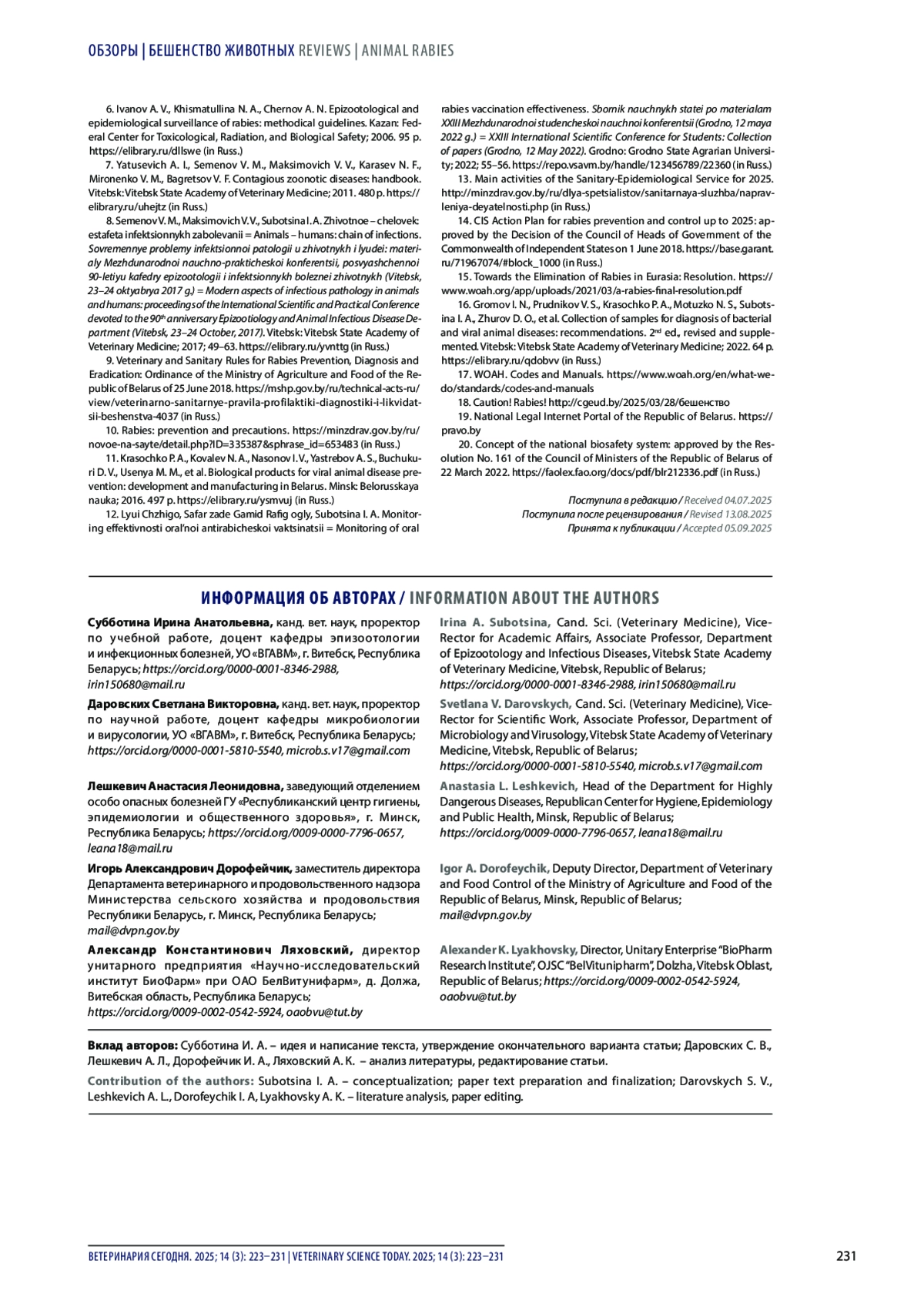 5. Шабейкин А. А., Гулюкин А. М., Зайкова О. Н. Обзор эпизоотической ситуации по бешенству в Российской Федерации за период с 1991 по 2015 годы. Ветеринария Кубани. 2016; (4): 4-6.