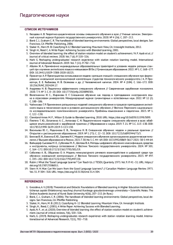 6. Harb G. Reshaping undergraduates’ research experience with station rotation learning model.International Journal of Advanced Research. 2019. Vol. 7 (11). P. 702-710.