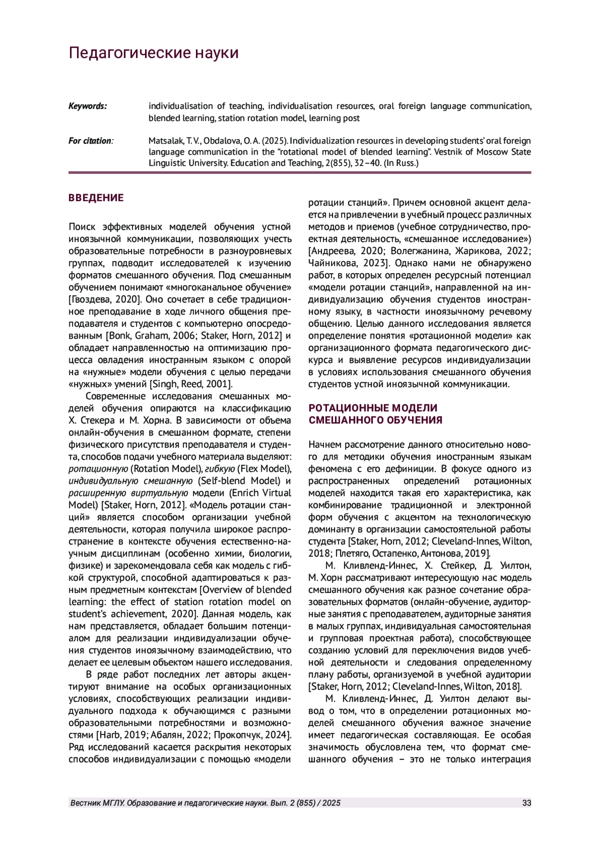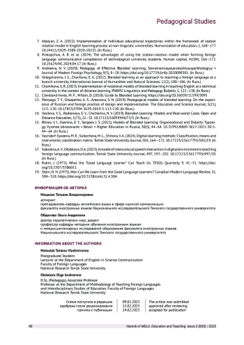 7. Абалян Ж. А. Применение индивидуальных образовательных траекторий в условиях модели ротации станций при изучении английского языка в неязыковом ВУЗе // Гуманизация образования. 2022. № 1. С. 168-177. DOI: 10.24411/1029-3388-2020-10225 EDN: LYNMEQ
