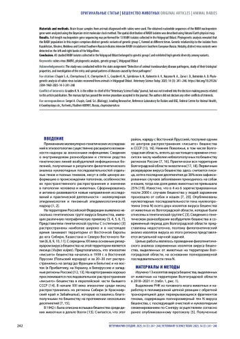 Введение. Нижнее Поволжье, в том числе Волгоградская область, вплоть до настоящего времени относится к числу наиболее неблагополучных по бешенству регионов России. Сведения о генетическом разнообразии возбудителя бешенства в современный период для Волгоградской области представлены недостаточно, поэтому филогенетический анализ изолятов вируса бешенства из этого региона представляется актуальной научной задачей.