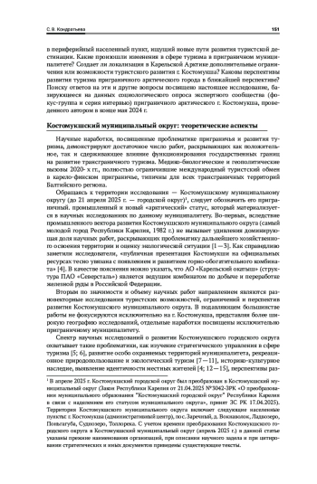 7. Vasilieva, A. V., Volkov, A. D., Karginova-Gubinova, V. V., Tishkov, S. V. 2022, Opportunities of development of eco-tourism in the Karelian Arctic in the conditions of the existing environmental and social challenges, Journal of Risk and Financial Management, vol. 15, No 10, p. 1—19,EDN: VEJPLS, https://doi.org/10.3390/jrfm15100484