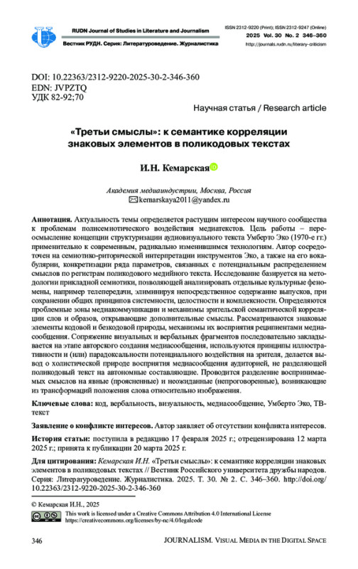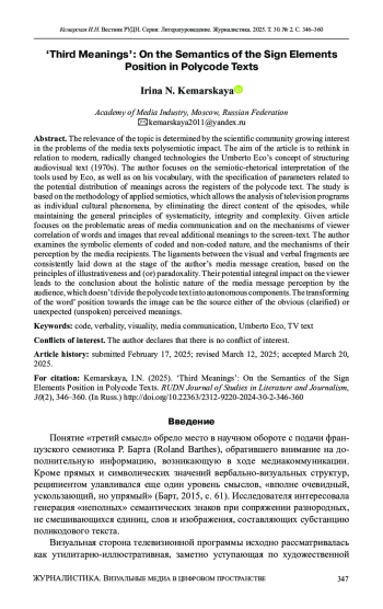 Актуальность темы определяется растущим интересом научного сообщества к проблемам полисемиотического воздействия медиатекстов.