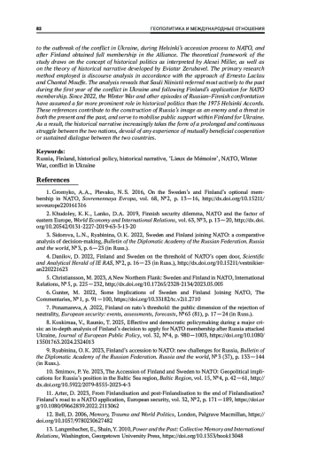 Рябинина, О. К. 2023, Вступление Финляндии в НАТО: новые вызовы для России, Вестник Дипломатической академии МИД России. Россия и мир, № 3 (37), с. 133—144, EDN: LTKQTG