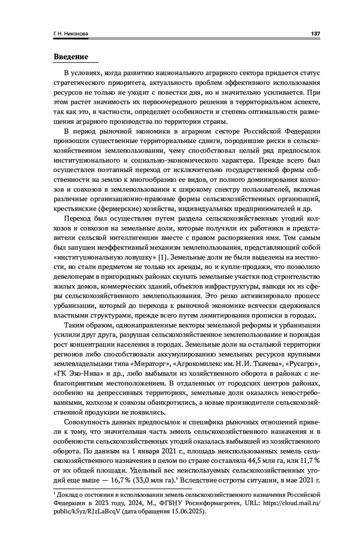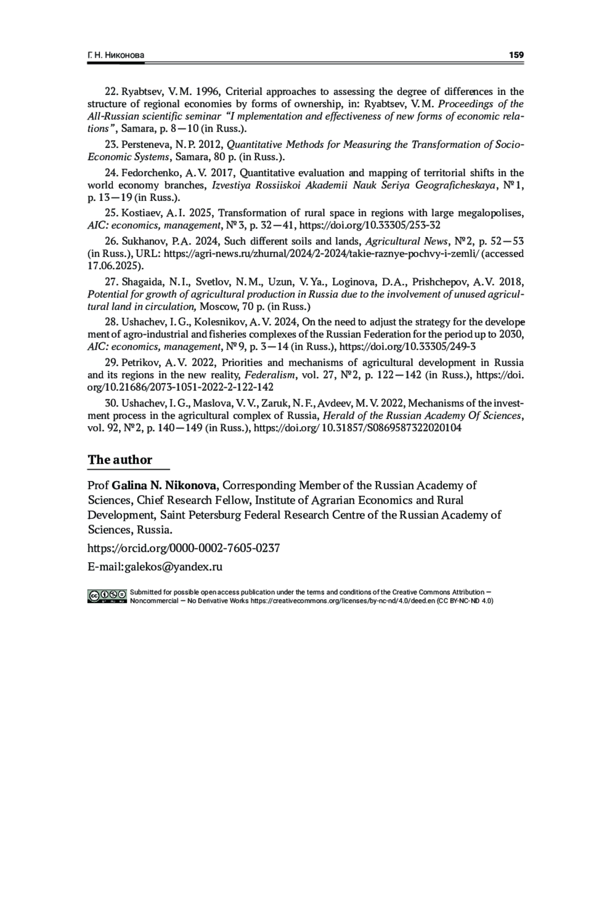 Никонова, Г. Н. 2023, Особенности современной институциональной среды земельных отношений в аграрном секторе, Аграрная наука Евро-Северо-Востока, т. 24, № 6, с. 1067— 1076, EDN: XCEGNT, https://doi.org/10.30766/2072-9081.2023.24.6.1067-1076