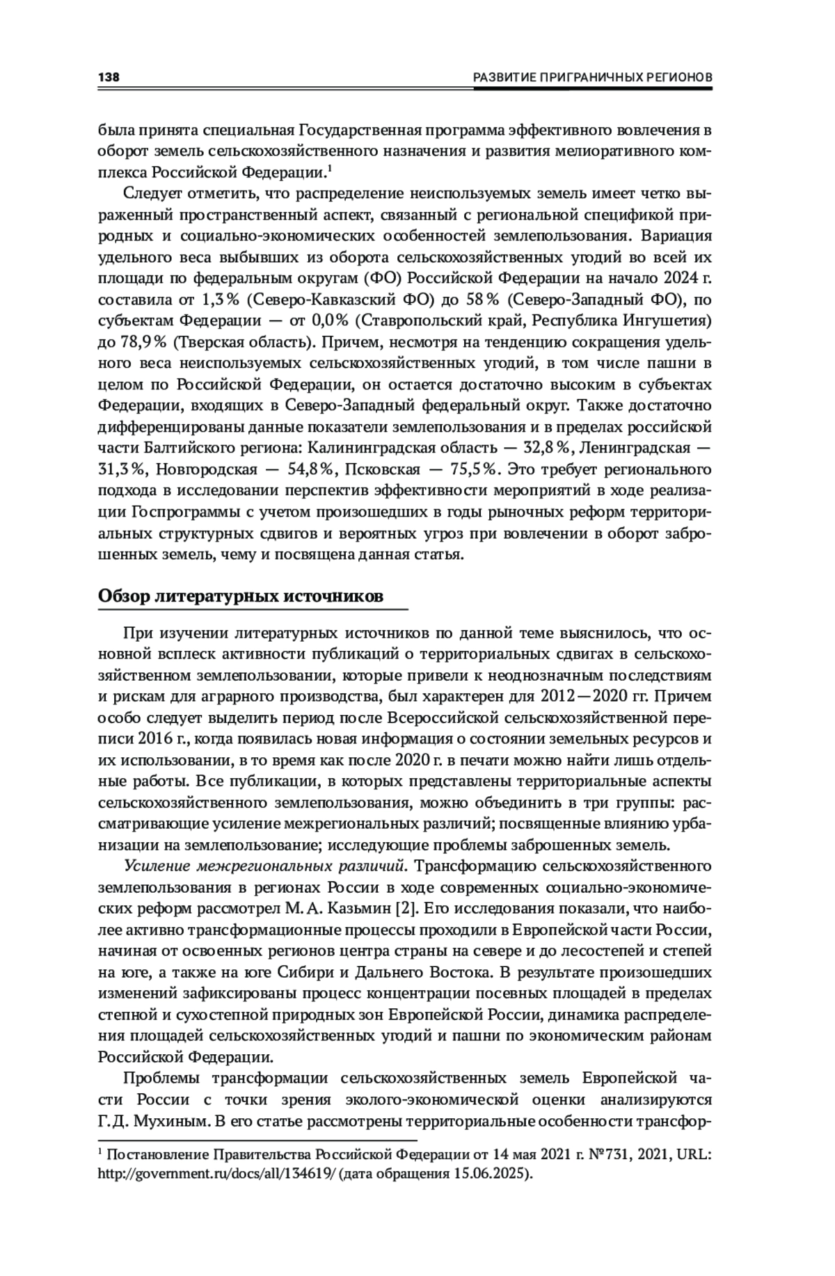 Казьмин, М. А. 2016, Трансформация сельскохозяйственного землепользования в регионах России в ходе современных социально-экономических реформ, Региональные исследования, № 2 (52), с. 103—112, EDN: WHTRIL