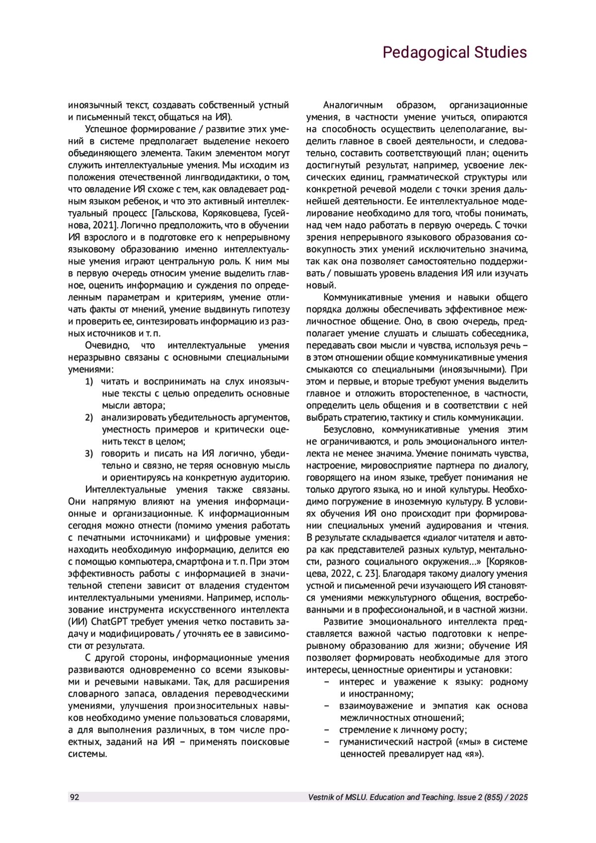 9. Титова С. В. Технологические решения на базе искусственного интеллекта в обучении иностранным языкам // Вестник Московского университета. Серия 19: Лингвистика и межкультурная коммуникация. 2024. С. 18-37. EDN: OWSQVG