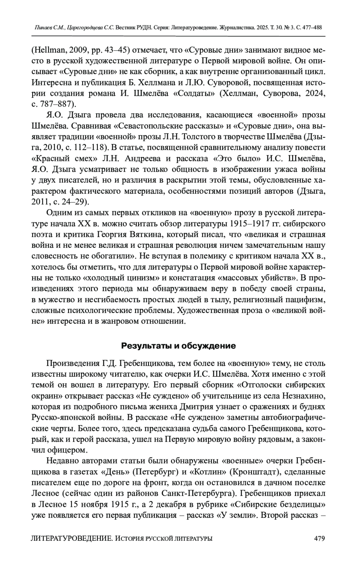 10. Дзыга Я.О. “Война в настоящем ее выражении” (трагедия войны в “Севастопольских рассказах” Л.Н. Толстого и “Суровых днях” И.С. Шмелёва) // Вестник Военного университета. 2010. № 3(23). С. 112-118.
