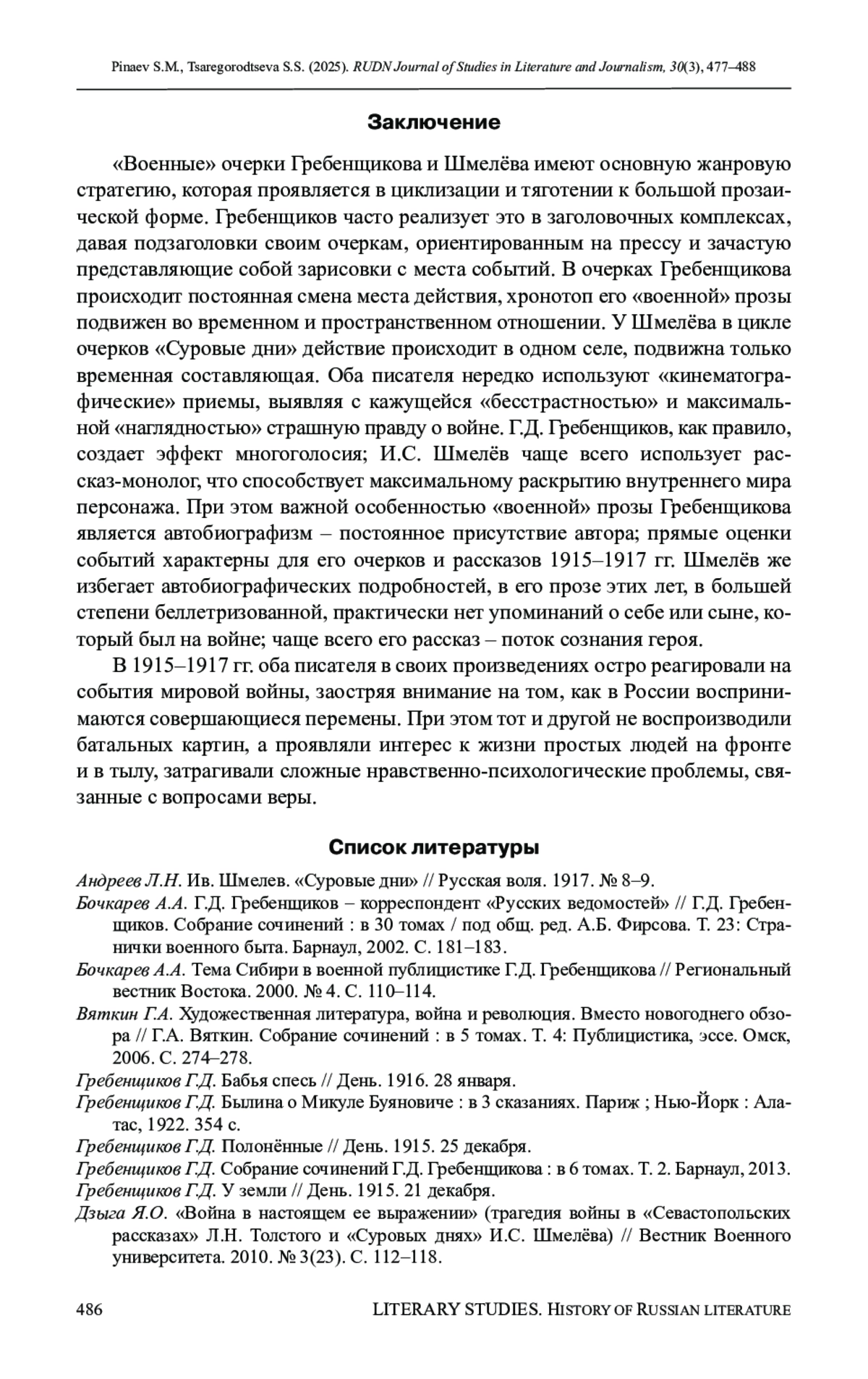 13. Пинаев С.М. И.С. Шмелёв: путь к духовному роман // И.С. Шмелёв и писатели литературного зарубежья. XVI Крымские международные шмелёвские чтения: сб. науч. статей. Алушта, 2007. С. 3-10.