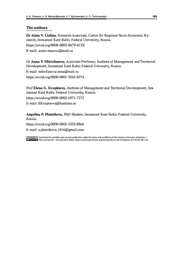 Емельянова, Л. Л., Лялина, А. В. 2020, Рынок труда эксклавной Калининградской области в условиях пандемии COVID-19, Балтийский регион, т. 12, № 4, с. 61—82, EDN: DRMHKM, https://doi.org/10.5922/2079-8555-2020-4-4