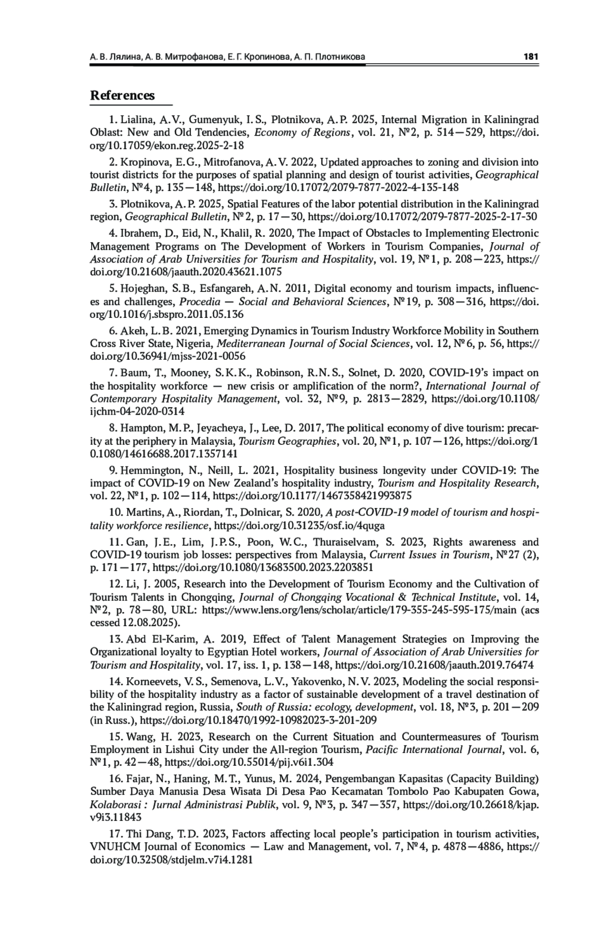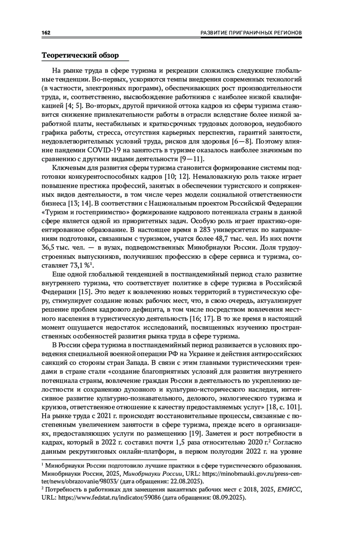Андрейченко, Е. В., Мухина, И. И. 2022, Рынок труда туризма и индустрии гостеприимства: кризис или новые возможности, Актуальные вопросы современной экономики, № 10, с. 166—182, EDN: DYZQJL, https://doi.org/10.34755/IROK.2022.13.16.015