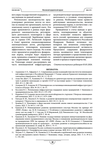 3. Аскерова М. Р., Аскерова М. Р. Технопарки как составляющая инновационной инфраструктуры // Sciences of Europe. 2024. № 135. С. 36-37.