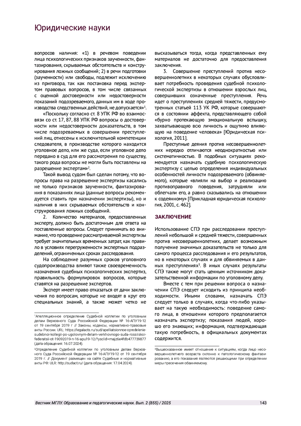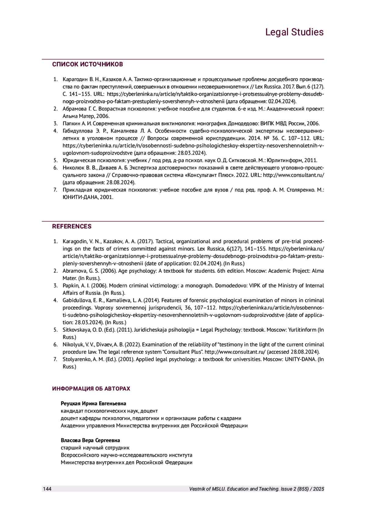 6. Николюк В. В., Диваев А. Б. Экспертиза достоверности“ показаний в свете действующего уголовно-процессуального закона // Справочно-правовая система “Консультант Плюс”. 2022. URL: http://www.consultant.ru/ (дата обращения: 28.08.2024).