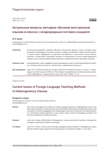 В статье рассматривается проблема обучения иностранным языкам в классах, которые характеризуются неоднородным составом учащихся и нередко приобретают черты поликультурности и полиэтничности. Наблюдение за практикой преподавания, а также анализ научной педагогической и методической литературы показали, что реализация личностно ориентированного подхода в таких классах требует особых решений и профессиональной подготовки педагогов.