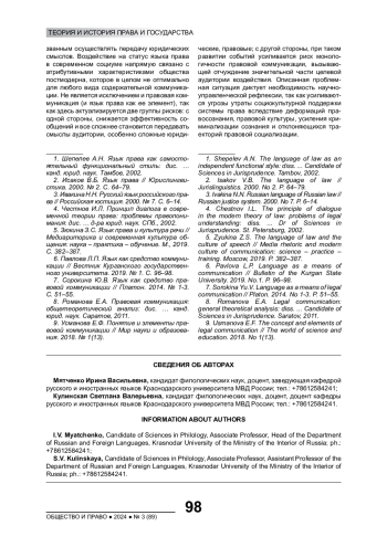 3. Ивакина Н.Н. Русский язык российского права // Российская юстиция. 2000. № 7. С. 6-14.