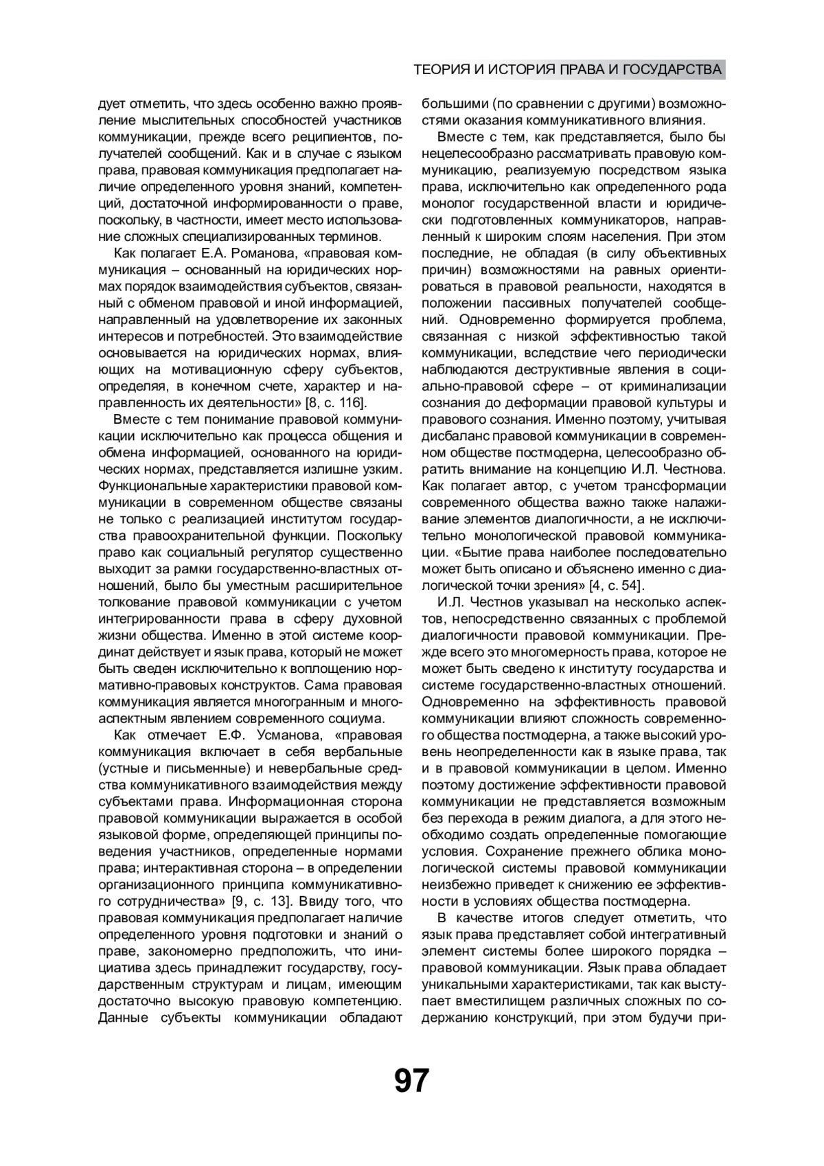 8. Романова Е.А. Правовая коммуникация: общетеоретический анализ: дис. … канд. юрид. наук. Саратов, 2011. EDN: QFSYND