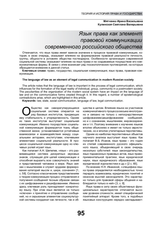7. Сорокина Ю.В. Язык как средство правовой коммуникации // Платон. 2014. № 1-3. С. 51-55. EDN: YUBQCT