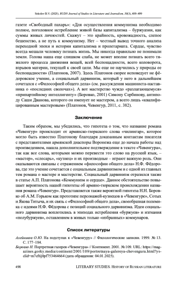 2. Боровко Н. Портретная галерея “Чевенгура” // Континент. 2001. № 109. URL: https://magazines.gorky.media/continent/2001/109/portretnaya-galereya-chevengura.html?ysclid=m7cftij0pf753464664 (дата обращения: 04.01.2025).