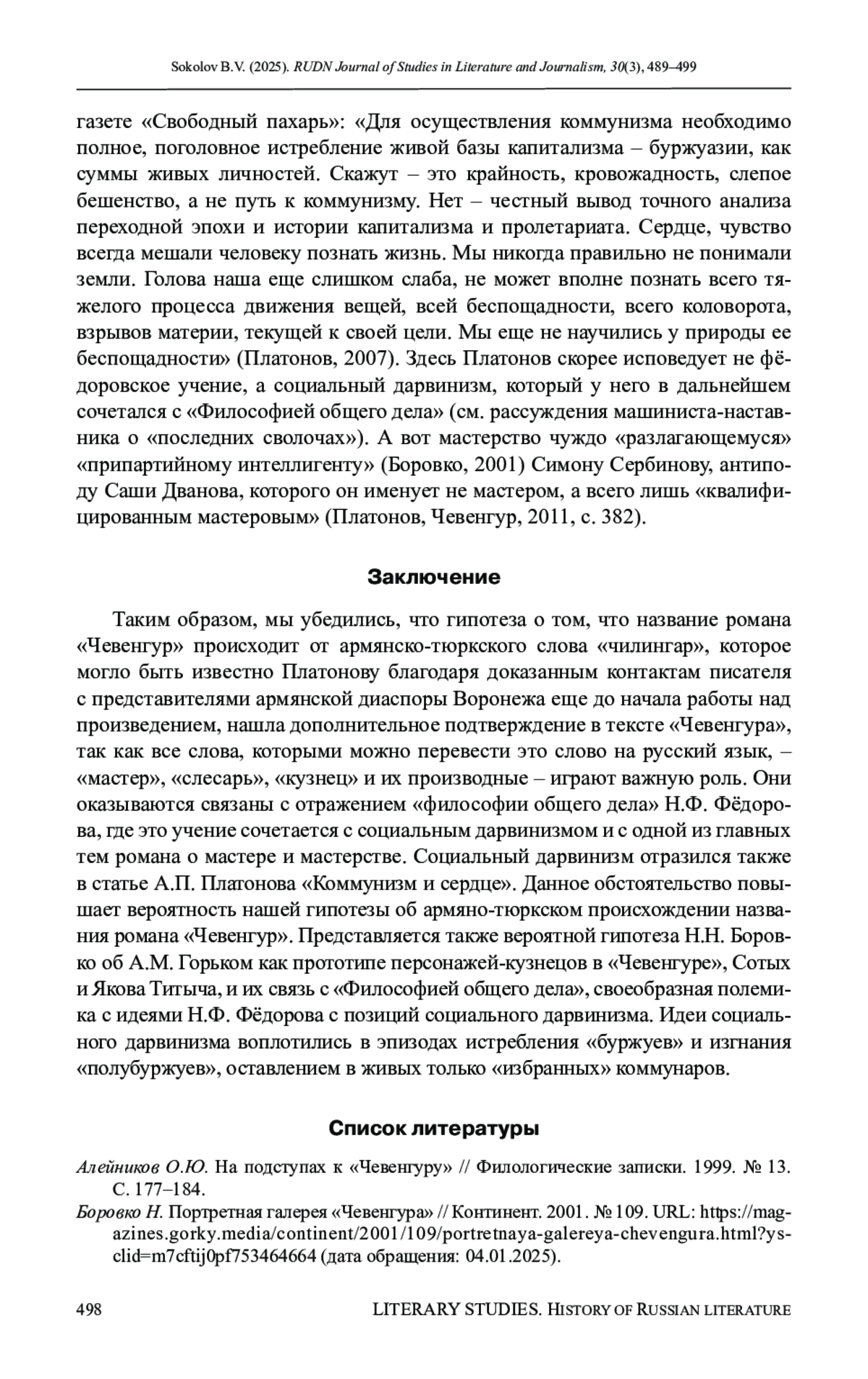 1. Алейников О.Ю. На подступах к “Чевенгуру” // Филологические записки. 1999. № 13. С. 177-184. EDN: SHMNQD