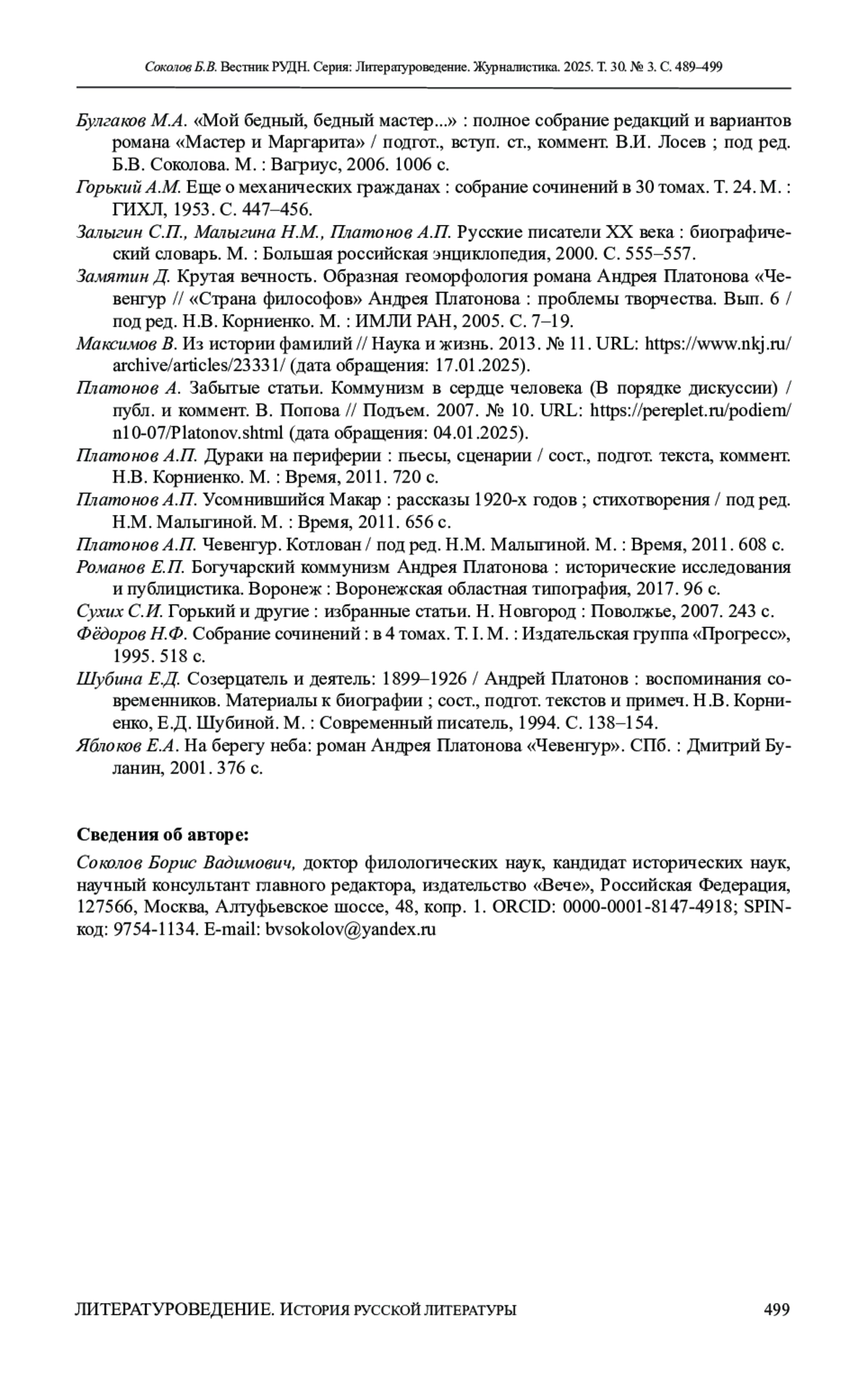 8. Платонов А. Забытые статьи. Коммунизм в сердце человека (В порядке дискуссии) / публ. и коммент. В. Попова // Подъем. 2007. № 10. URL: https://pereplet.ru/podiem/n10-07/Platonov.shtml (дата обращения: 04.01.2025).