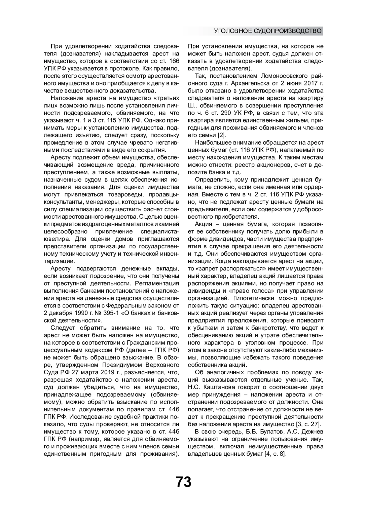 3. Каштанова Н.С. К вопросу о допустимости ограничения неимущественных прав владельцев ценных бумаг при наложении ареста на имущество в уголовном судопроизводстве Российской Федерации: теория, законодательство, практика // Российский следователь. 2017. № 5. С. 26-30. EDN: YIYHIX