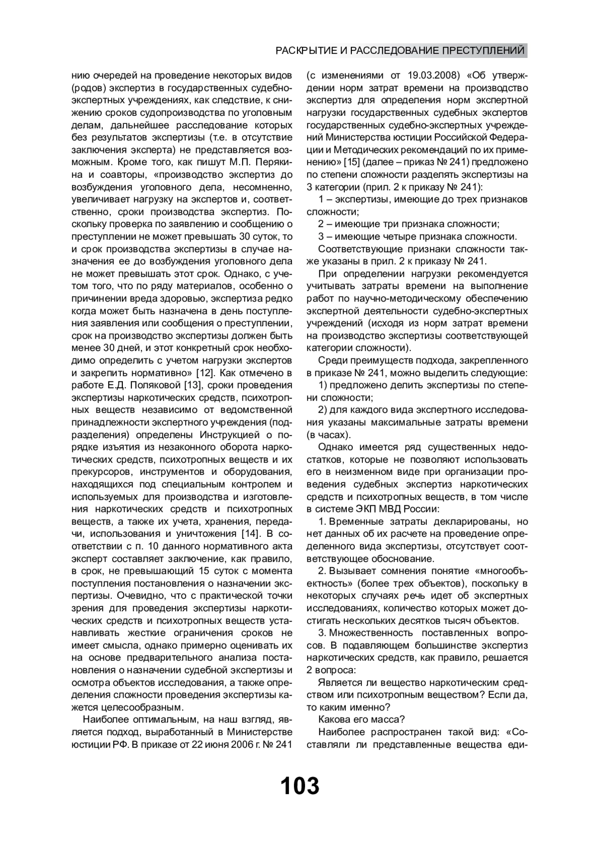 12. Перякина М.П., Аверинская С.А., Щуров Е.А. К вопросу о сроках производства судебных экспертиз по уголовным делам // Вестник экономической безопасности. 2017. № 4. С. 176-181. EDN: XSRBBR